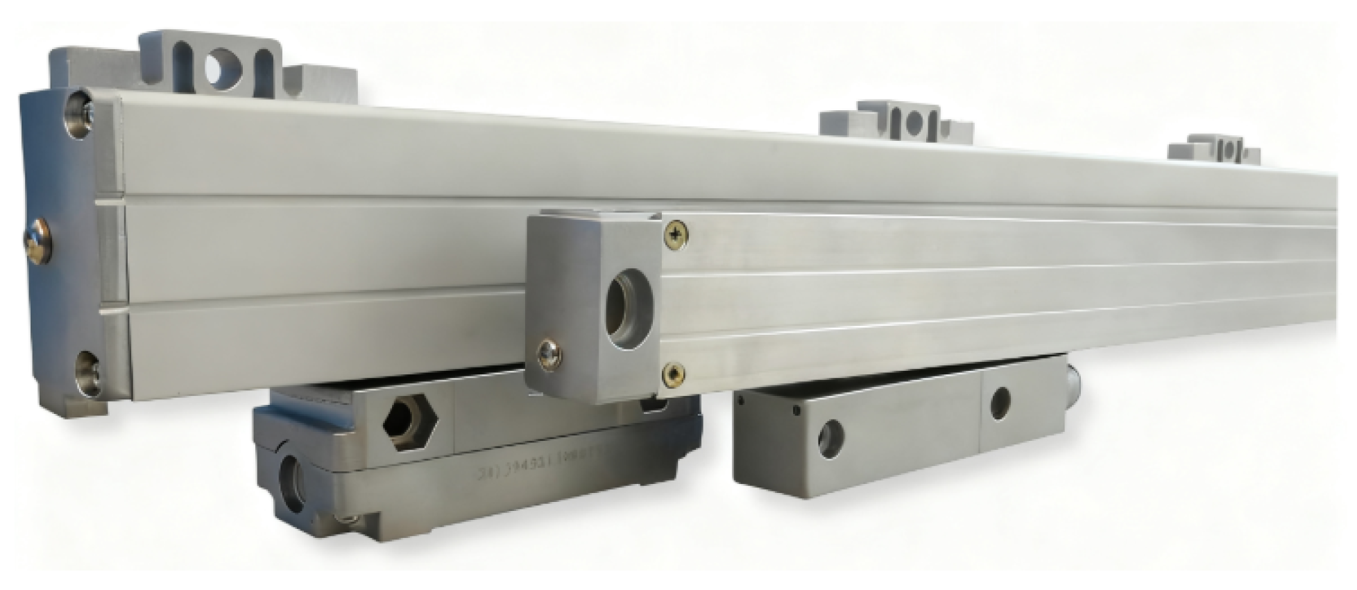 - Structural Materials: Encoder scale materials and structural designs also play a decisive role in performance. Glass scales offer superior precision and are commonly employed in ultra-precision applications such as optical lens grinding machines. However, they are inherently brittle, typically limited to lengths below 4 m [63], and relatively costly. Their advantages lie in surface flatness and a low coefficient of thermal expansion, which facilitate accurate alignment during installation. By contrast, steel-tape encoders provide greater flexibility and can be manufactured in extended lengths of up to 4 m or more [63], making them more suitable for large-travel machine tools such as gantry machining centers, albeit at the expense of reduced accuracy. Regarding structural design, enclosed encoders integrate the scale within a protective housing, ensuring superior resistance to dust, coolant, and machining debris. In machine tools with sufficient installation space—such as floor-type boring–milling machines—enclosed glass encoders are preferred, as they safeguard the measurement accuracy and prolong the service life. In compact machine tools, however, where installation space is constrained, miniaturized glass or steel-tape encoders provide a more practical solution, enabling flexible integration without interfering with the arrangement of other components, while still ensuring adequate measurement performance.