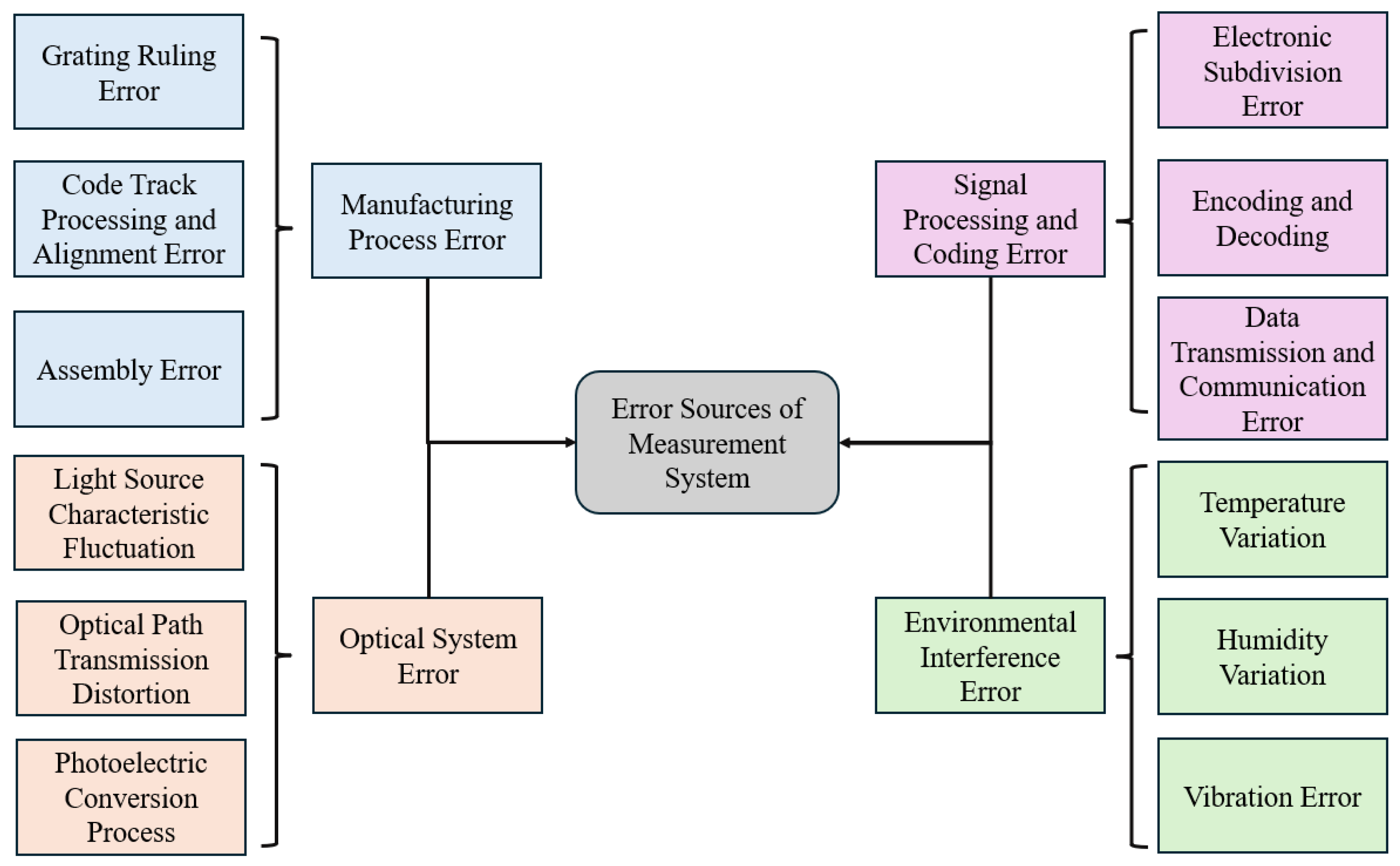 | Signal processing and encoding error | Limited by hardware resolution and sampling rate. | Mainly affect high-resolution and high-speed measurement scenarios and represent error sources with the highest controllability, relying on algorithm optimization. | 4 |