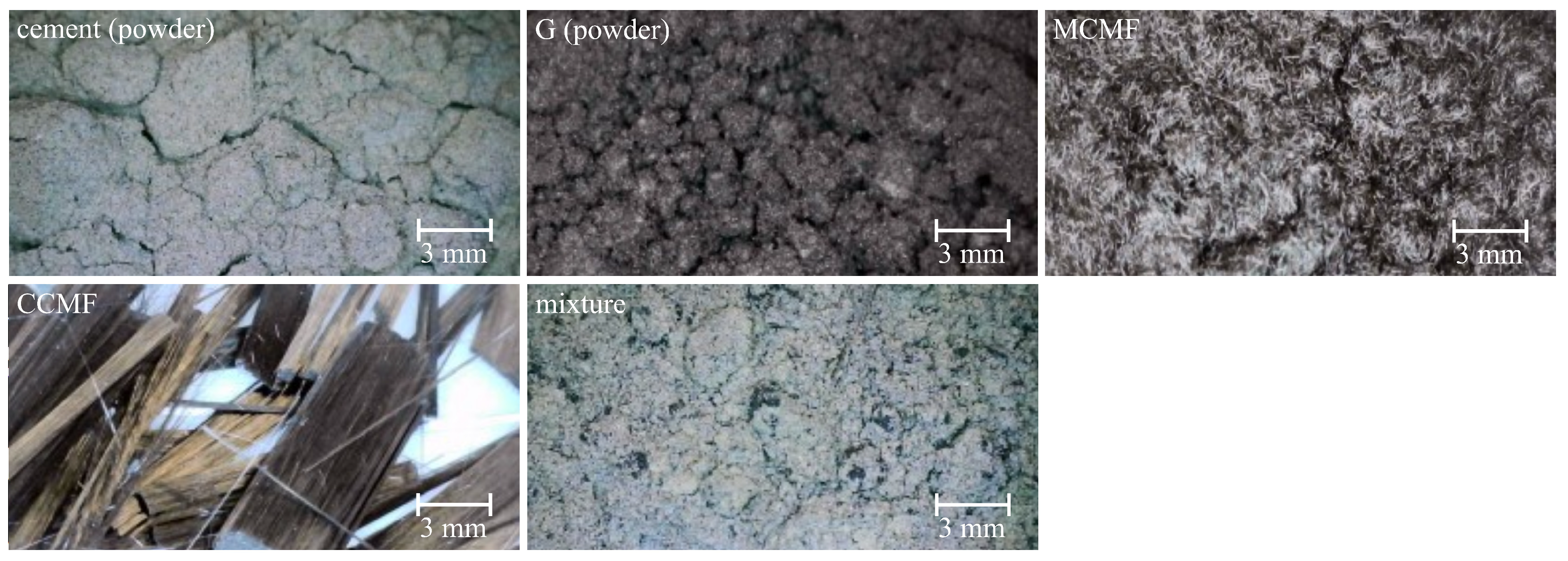 Mixture Type | Cement (g) | G (g) | G/c (%) | MCMF (g) | MCMF/c (%) | CCMF (g) | CCMF/c (%) | w/c (%) |
