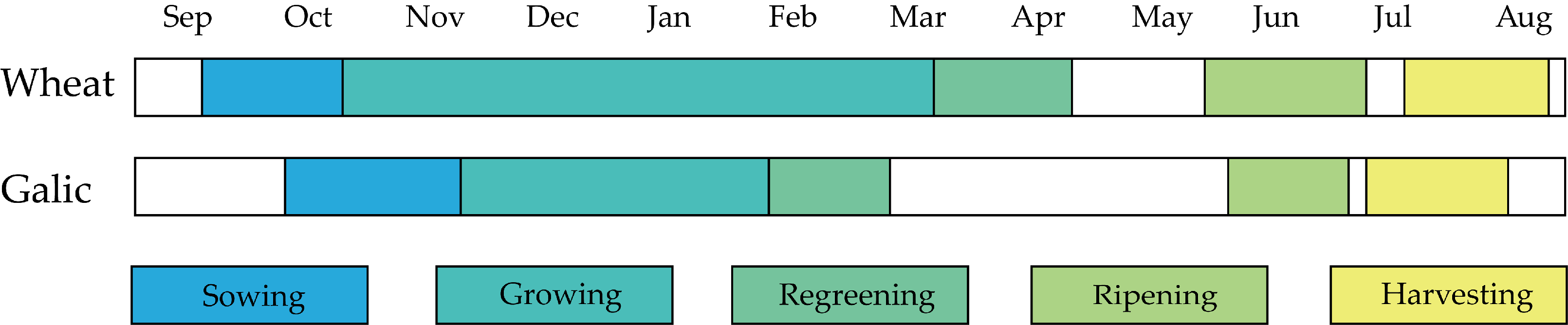 - Kordi, F.; Yousefi, H. Crop Classification Based on Phenology Information by Using Time Series of Optical and Synthetic-Aperture Radar Images. Remote Sens. Appl. Soc. Environ. 2022, 27, 100812. [Google Scholar] [CrossRef]