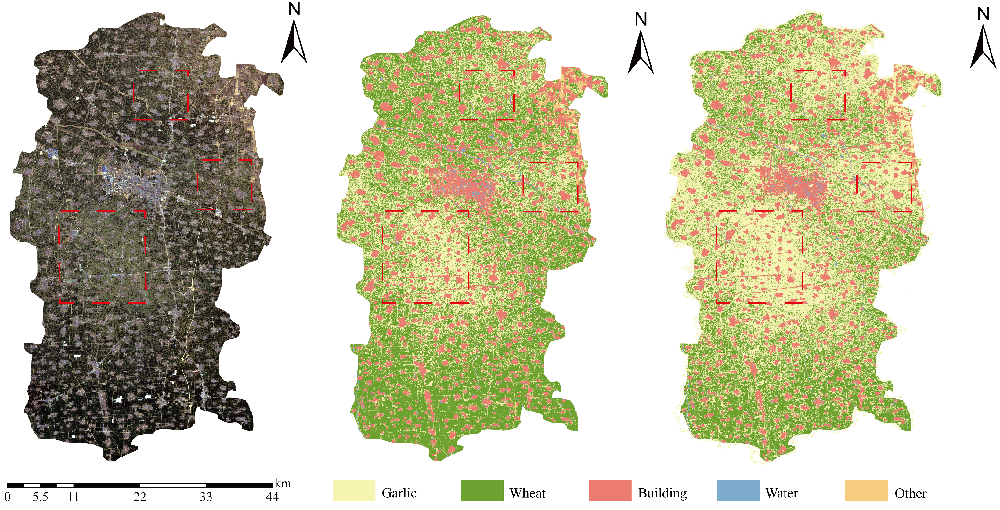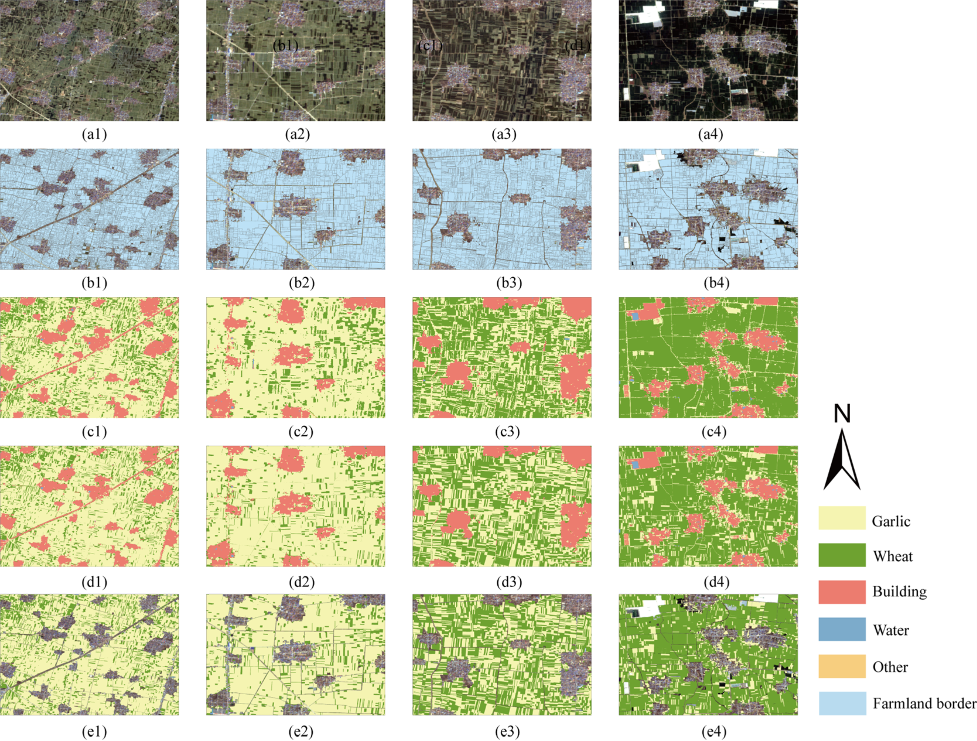 - Field-Level Spatial Constraints: Incorporation of extracted agricultural boundaries as spatial constraints to refine pixel-level classification results and generate field-aligned garlic distribution maps that align with actual agricultural production units.