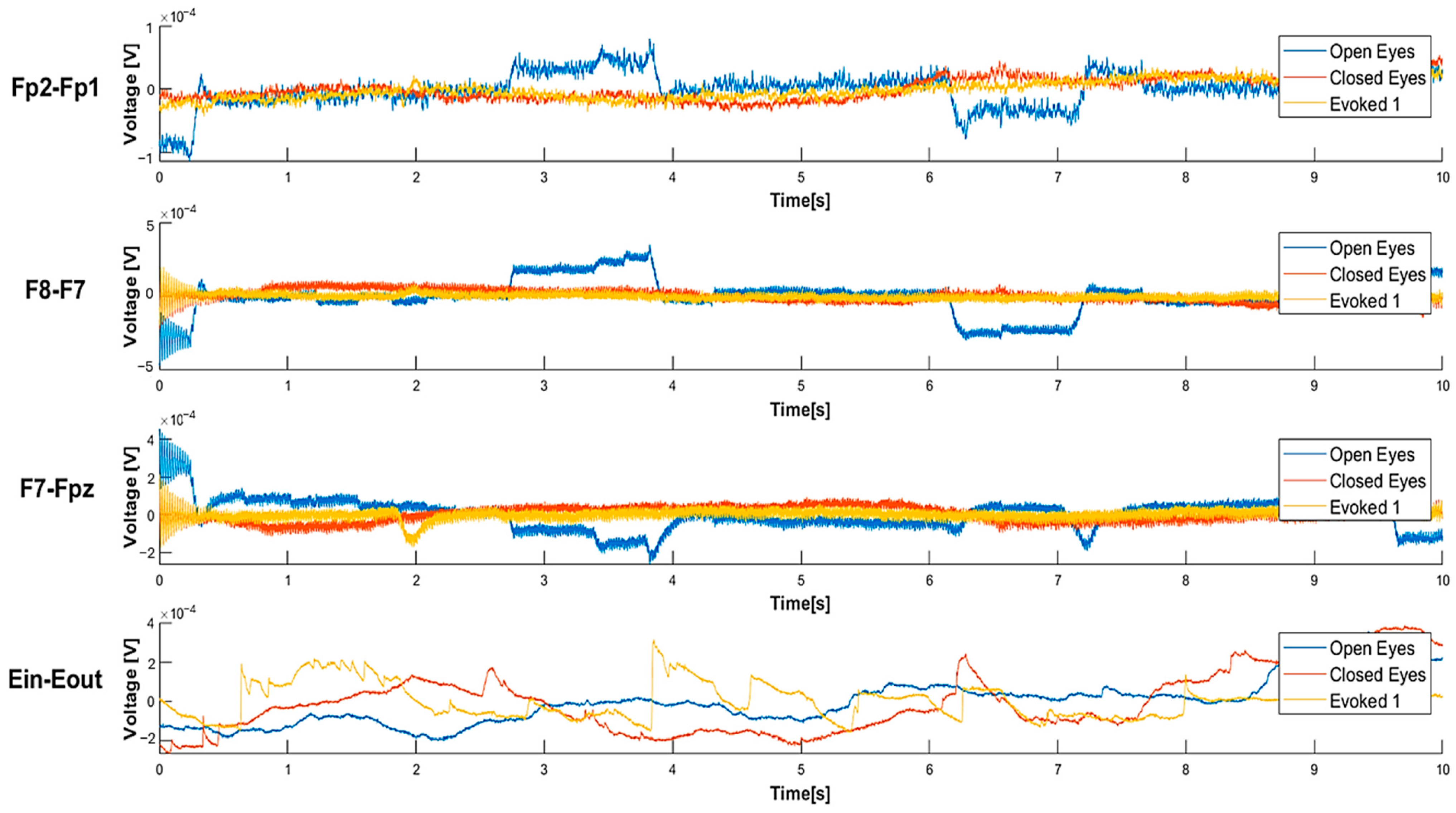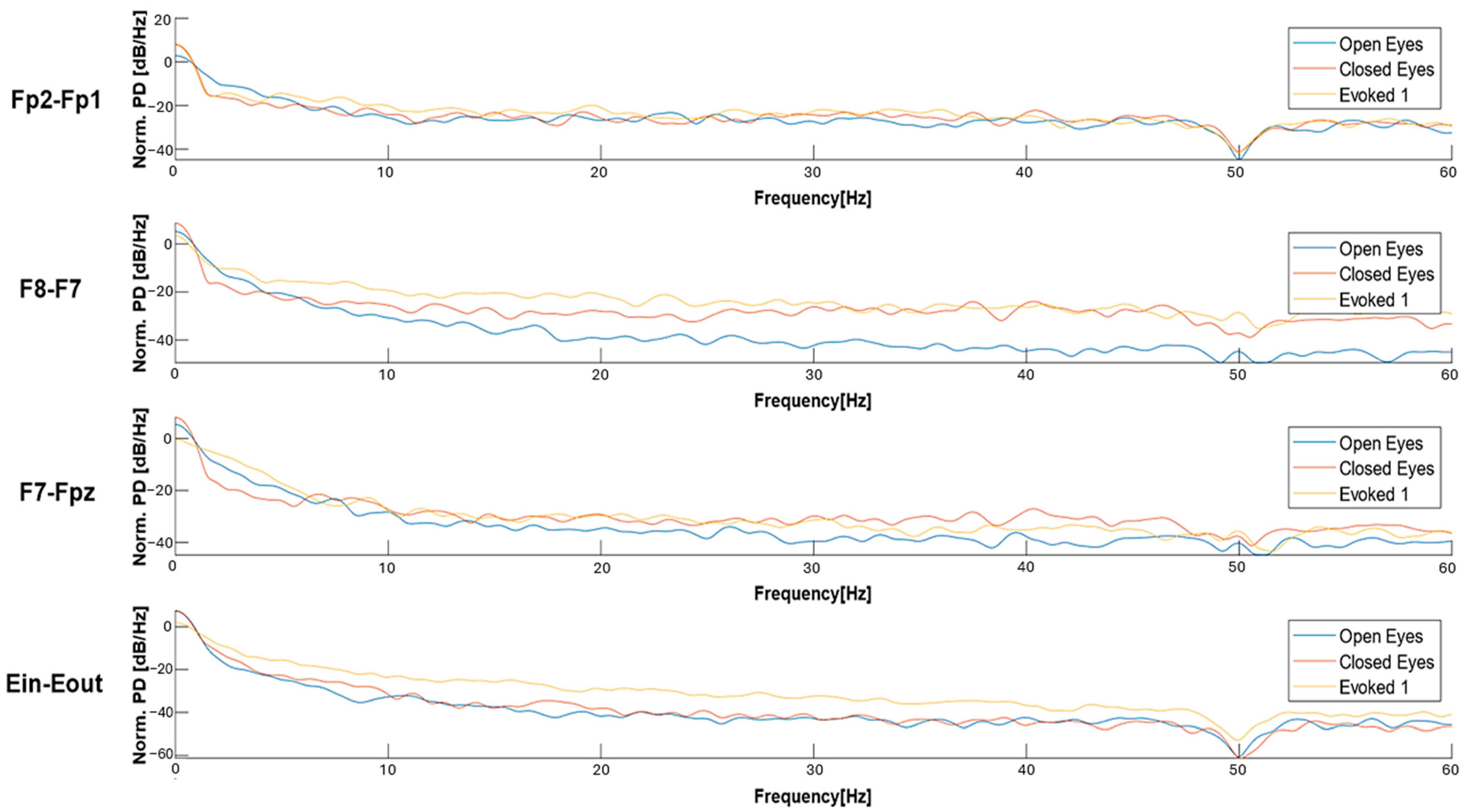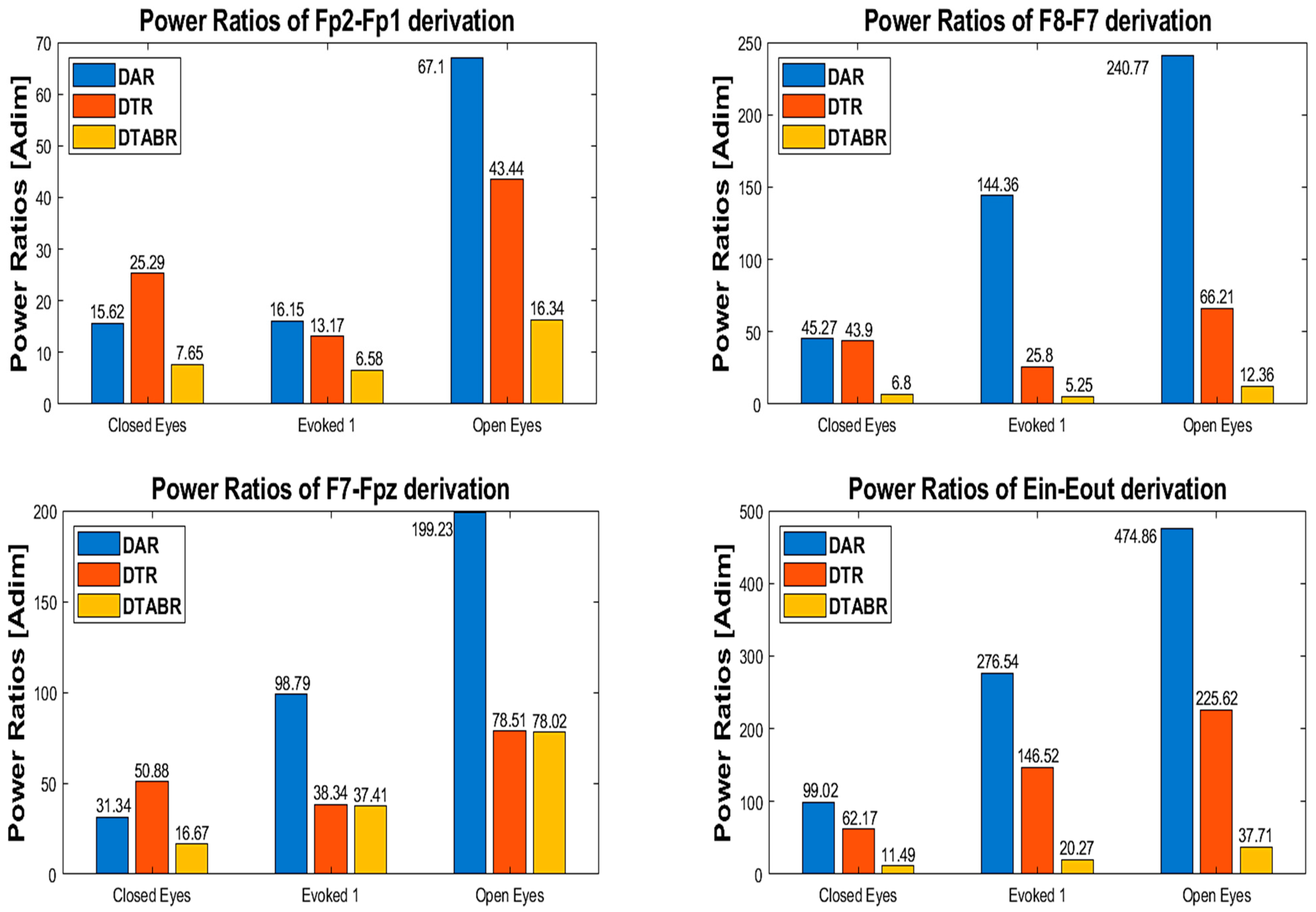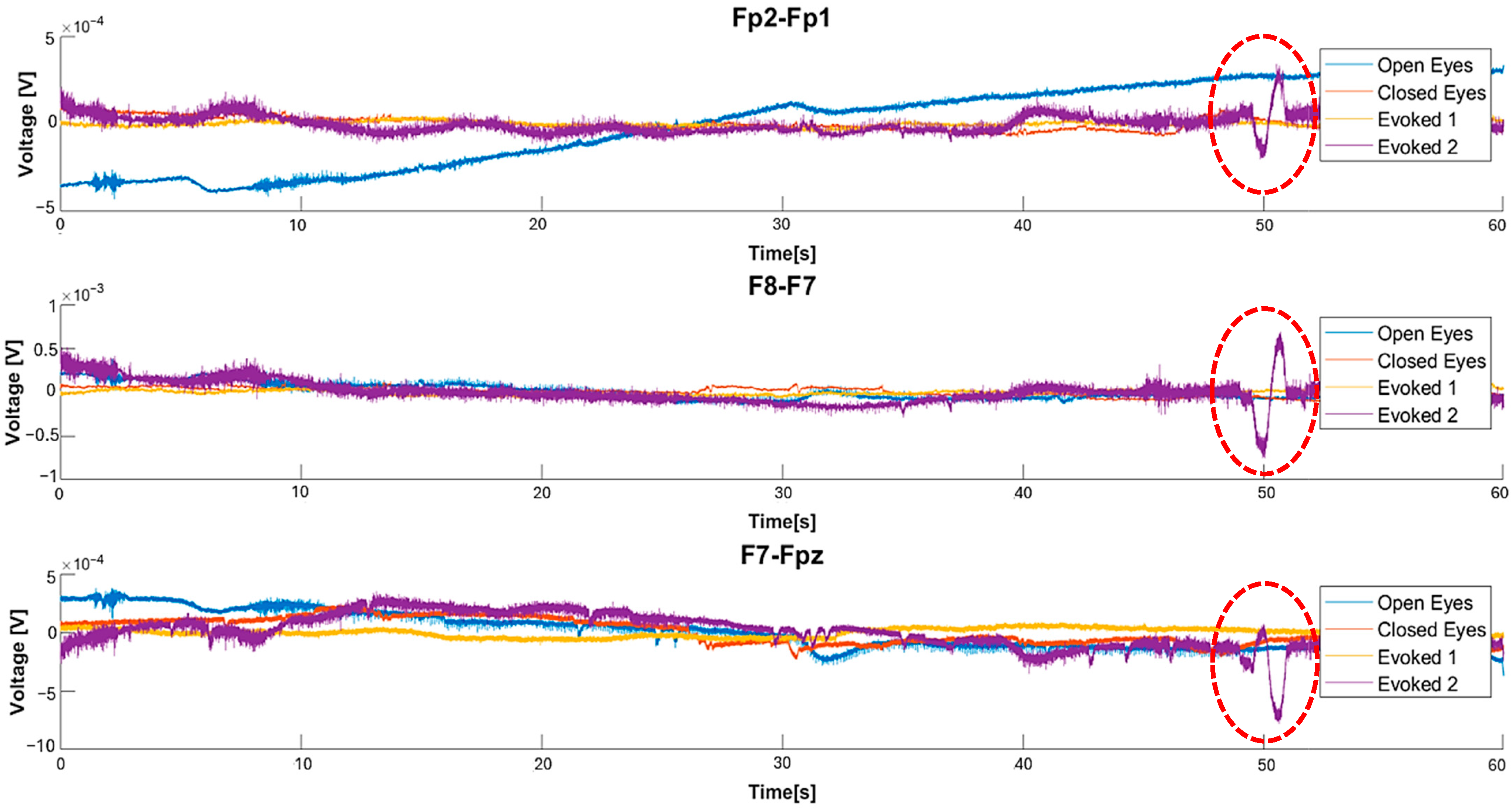 4.1. Experimental Tests on the Acquisition of the EEG from the Forehead, Ear, and In-Ear