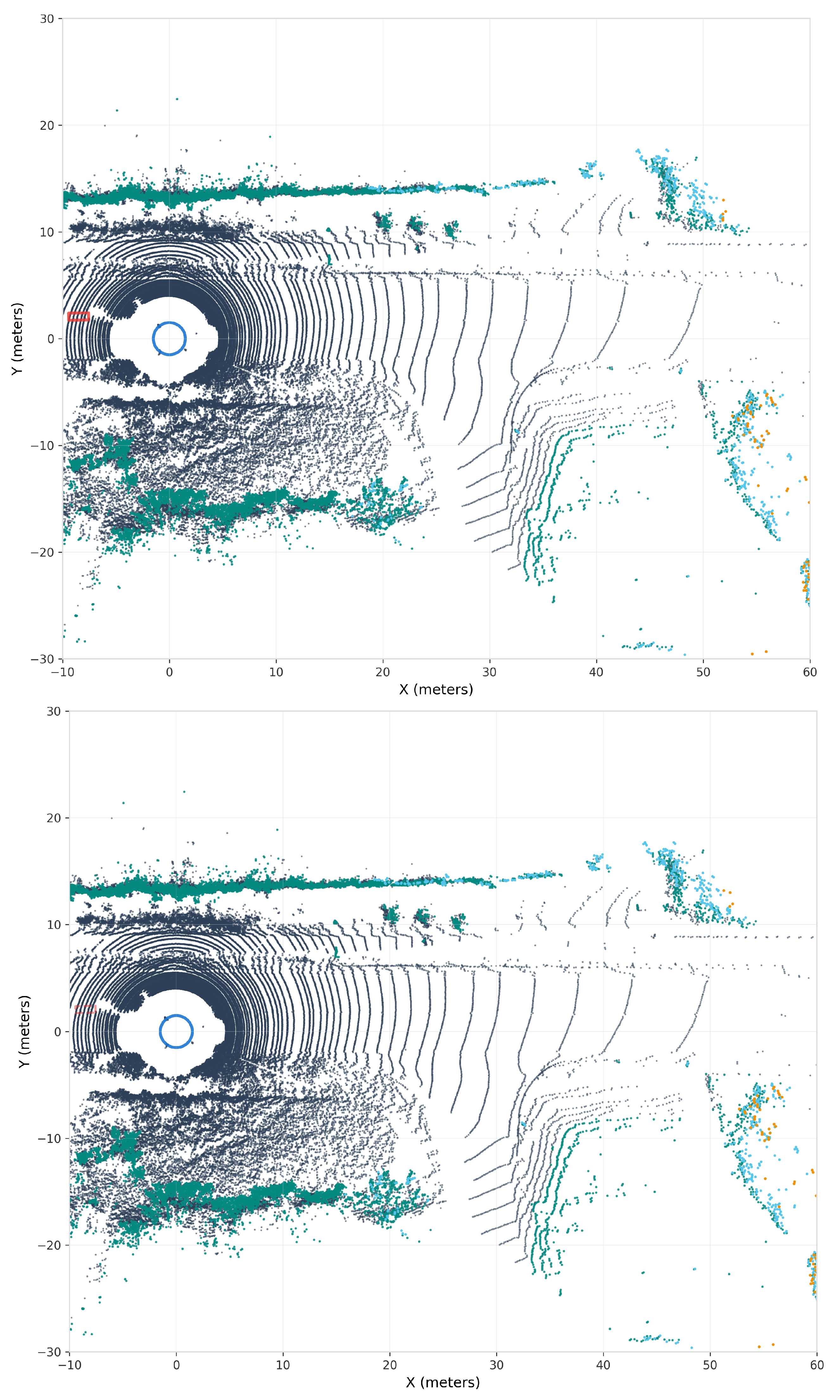 Our ConvNet-based approach offers several advantages for robustness evaluation: it enables gradient-free testing at inference time, scales efficiently across different detection architectures, and provides interpretable vulnerability metrics through controlled perturbation generation. The method’s effectiveness across both SECOND and CenterPoint architectures, despite their structural differences, suggests that these vulnerabilities are systemic rather than architecture-specific.