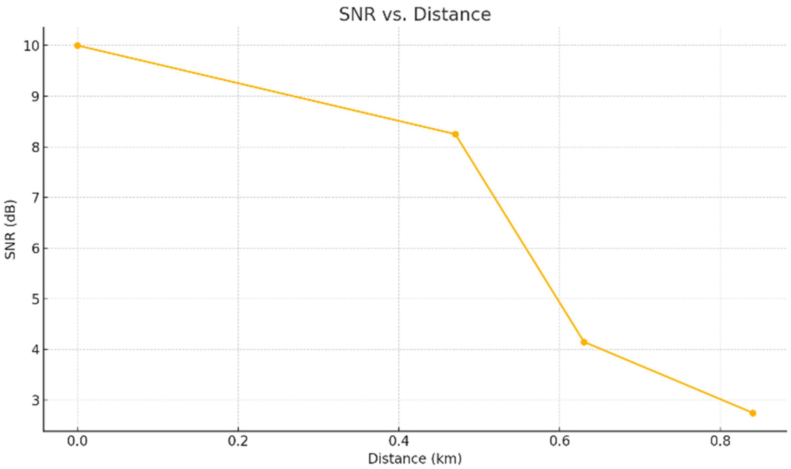 - Use of a low-gain antenna (2 dBi), which limited the effective range to ~1 km.
