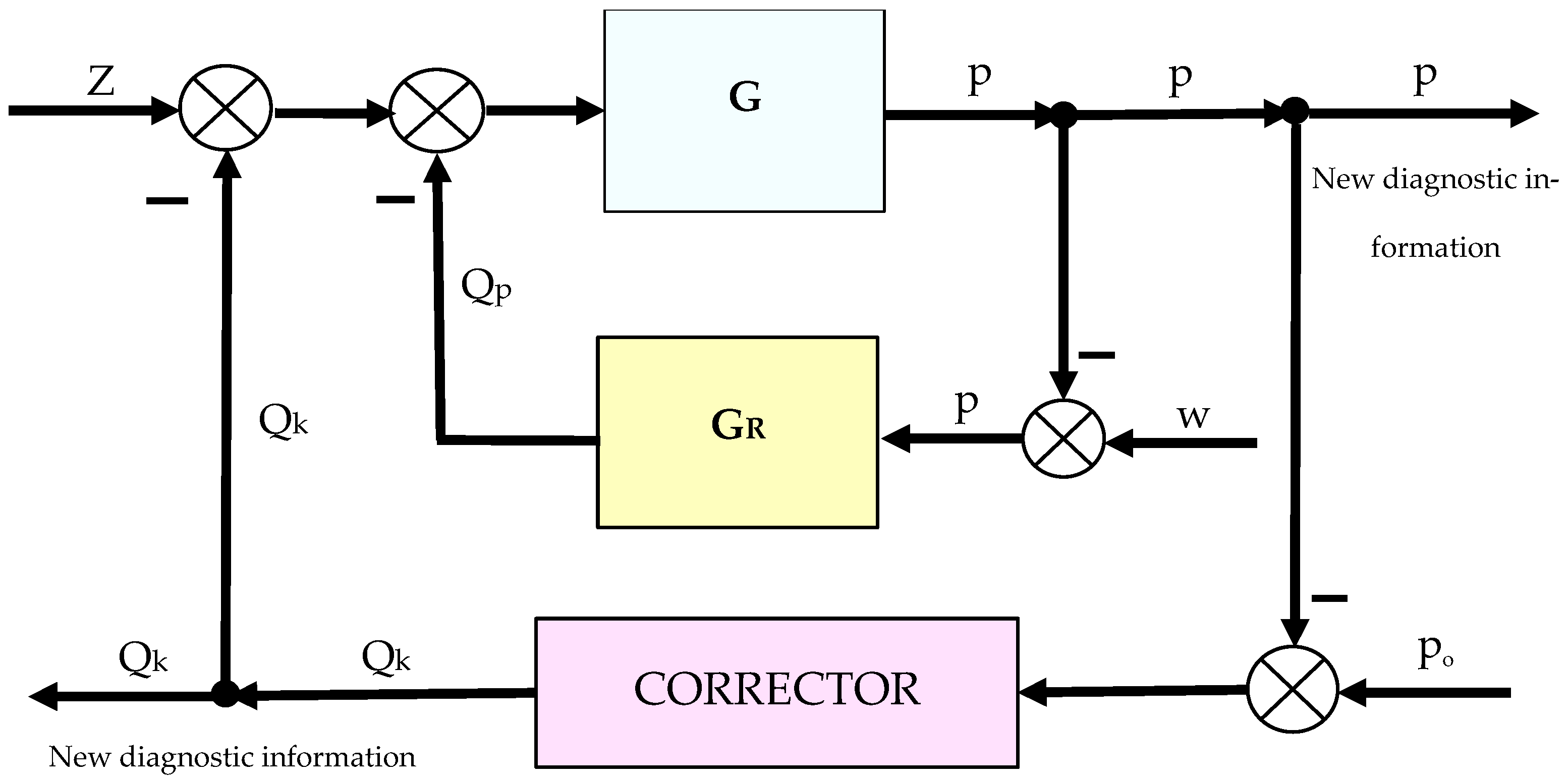 - The change in the step response as a function of changes in the design parameters of the hydrostatic drive and regulator depends on the parameters of the corrector used. Therefore, it is possible to use multiple correctors to test the same hydrostatic drive, and the resulting signals, e.g., Qk1, Qk2, and Qk3, significantly facilitate the identification of changes in the hydrostatic drive being tested.