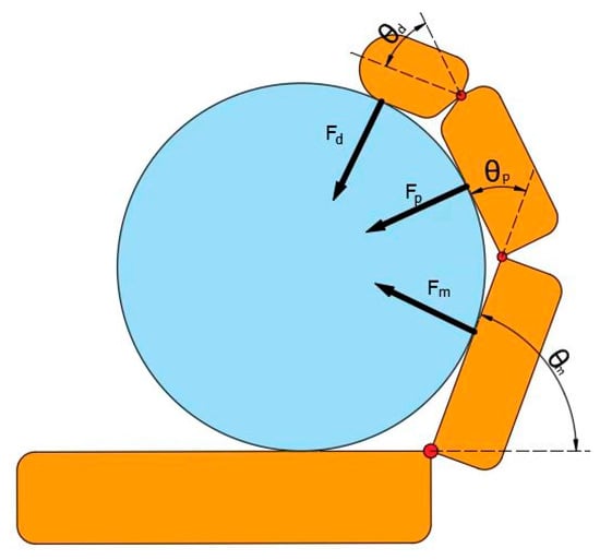 The obtained force is the combined force exerted by the proximal phalanges, middle phalanges and distal phalanges, that is, the grasping force acting on the object. The force analysis is shown in Figure 6.