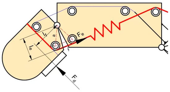 The rotation angle of the distal phalanx, , is directly related to the deformation of the spring in the rigid–flexible coupled structure: the spring is pulled by the middle phalanx, and its deformation increases with the increase in the PIP joint angle.