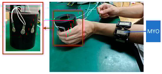 During the experiment, participants were seated comfortably: the tested arm rested naturally on the table, with the elbow flexed at approximately 90°, and the wrist in a neutral position. A Myo armband was worn on the forearm to collect 8-channel sEMG signals. Low-pass filtering is adopted to preprocess the original 8-channel sEMG signals to eliminate noise. The pressure sensor signals and sEMG signals were time-aligned using a host computer, and the sampling rate was uniformly set to 100 Hz.