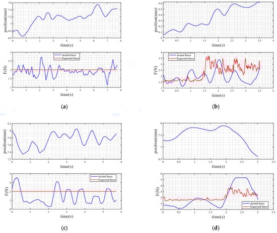 Subsequently, the optimal control signals derived from MPC are used to drive the electric cylinder in real time, achieving precise displacement trajectory tracking. This ultimately enables constant-force grasping (with a target force of 2 ± 0.3 N) or variable-force grasping of flexible objects.