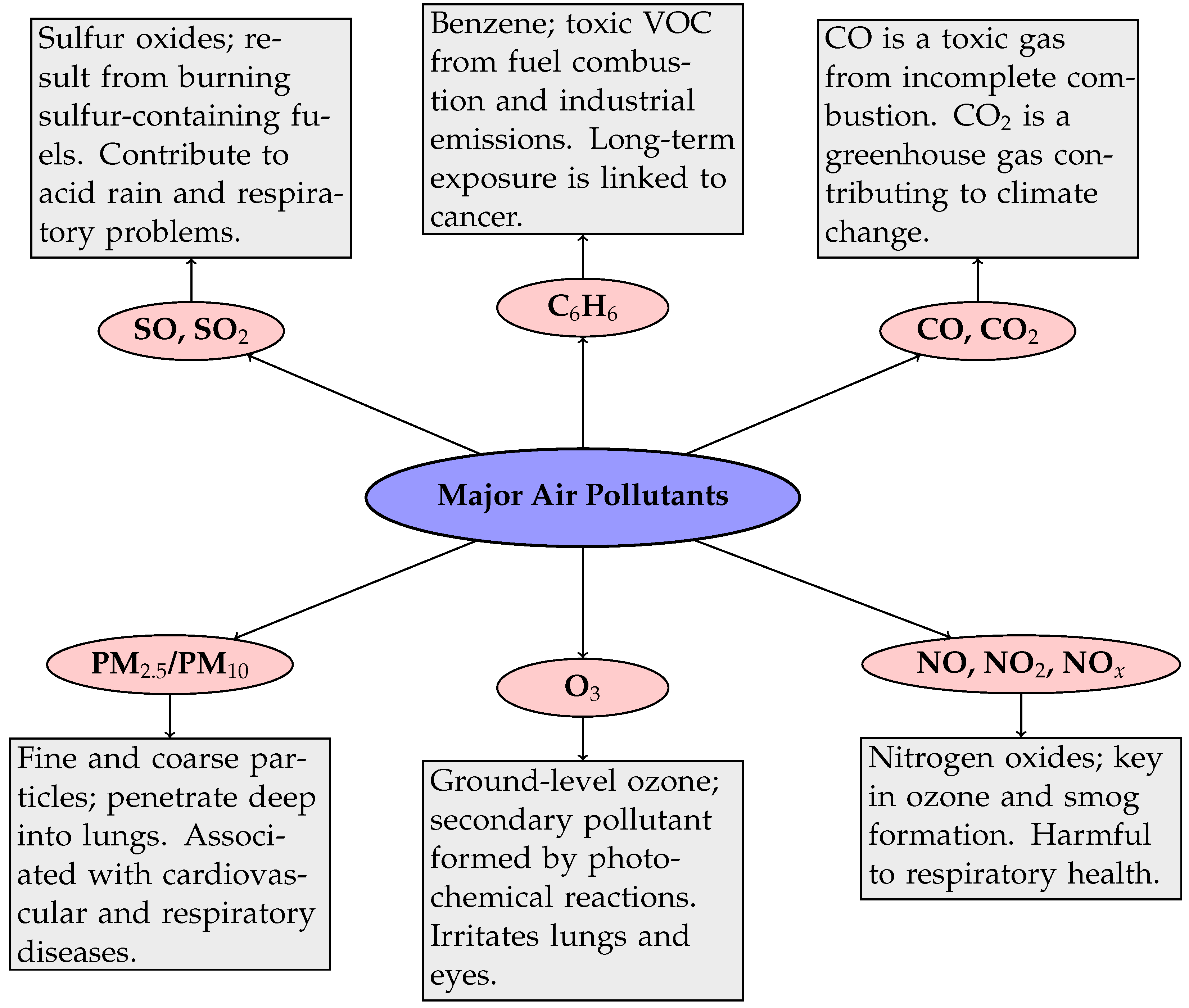 163], are widely used for simulating atmospheric pollutant dispersion and chemical transformations. These models provide high-resolution spatiotemporal forecasts, supporting both short-term nowcasting of pollution peaks and longer-term scenario analyses. They can be coupled with ground-based, satellite, or UAV measurements to improve forecast accuracy and enable comprehensive environmental assessments.