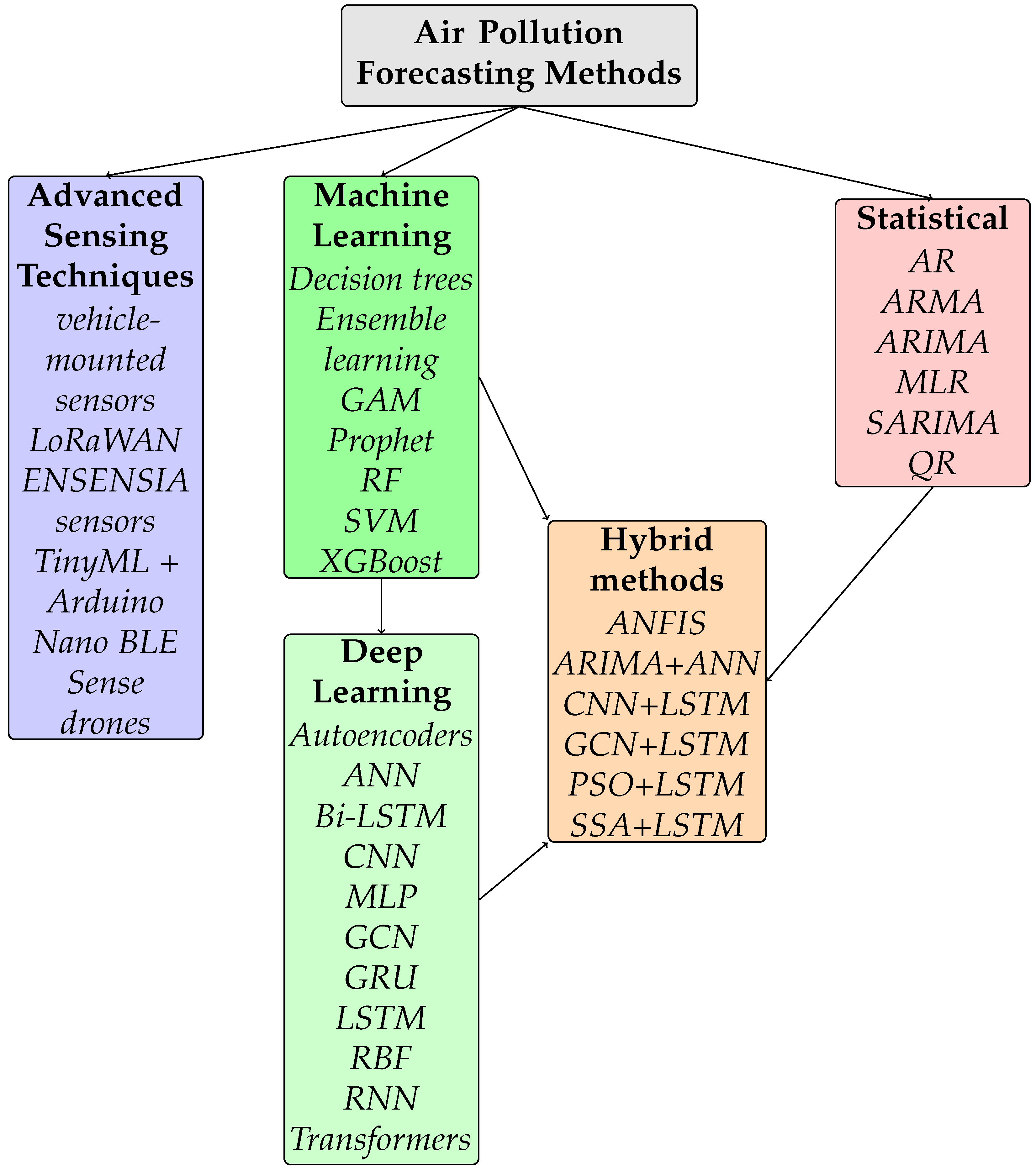 Future research should focus on combining the strengths of different approaches, for example, by integrating physical models with adaptive machine learning or by using probabilistic and interpretability-focused techniques. Such integration could enhance forecast robustness, account for uncertainty, and provide actionable insights for regulatory planning, early warning systems, and public health interventions.