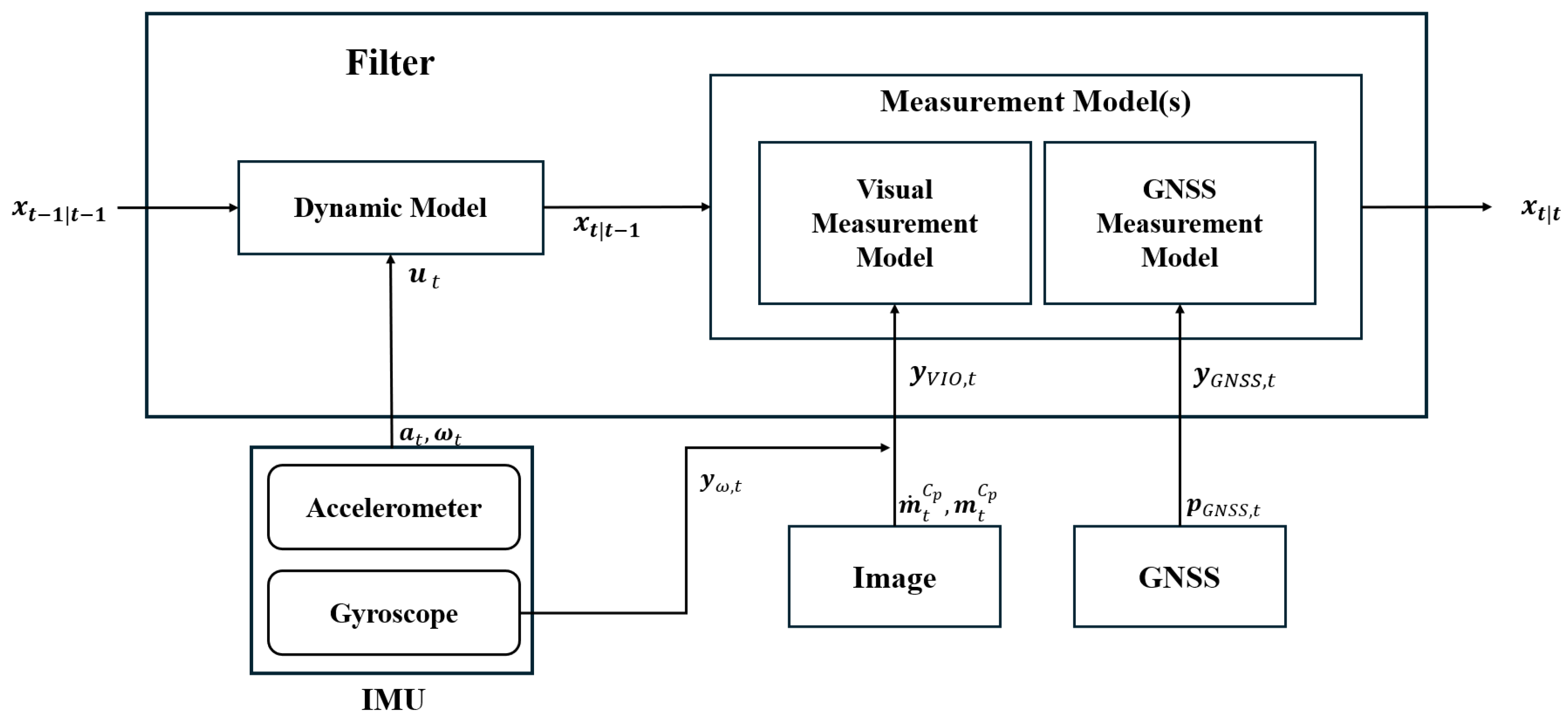 - A filter-based multi-sensor fusion strategy is proposed to enhance the localization accuracy of the vehicle. The proposed strategy can be applied to large-scale outdoor environments and prevent the accumulation of errors over time during long-term driving.