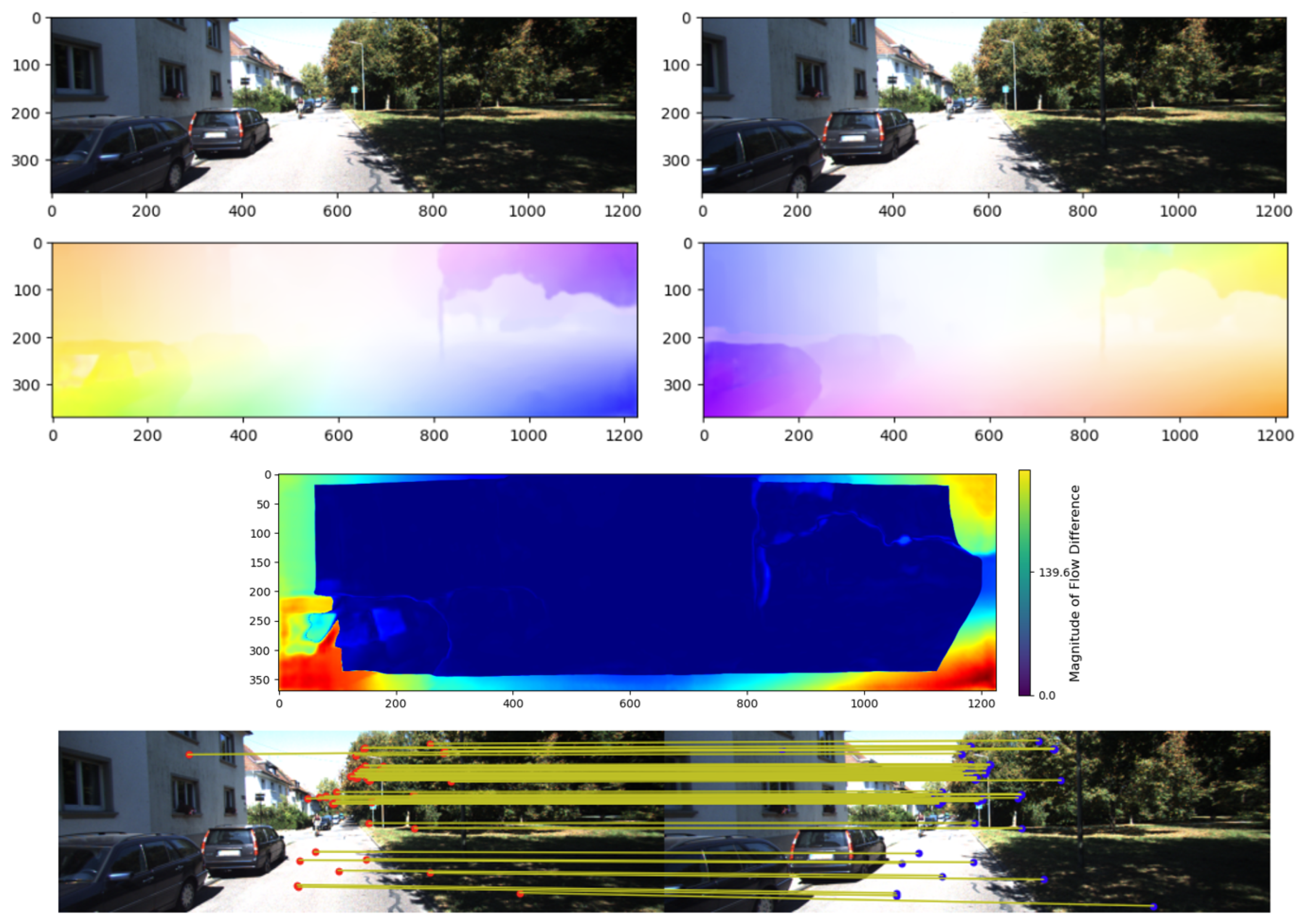 - Kang, J.M.; Sjanic, Z.; Hendeby, G. Optical Flow Revisited: How good is dense deep learning based optical flow? In Proceedings of the 2023 IEEE Symposium Sensor Data Fusion and International Conference on Multisensor Fusion and Integration (SDF-MFI), Bonn, Germany, 27–29 November 2023; IEEE: New York, NY, USA, 2023; pp. 1–6. [Google Scholar]