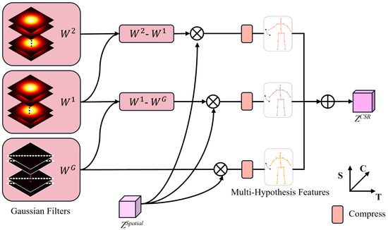 In scenarios of low-quality 2D pose detection, Gaussian filters effectively attenuate high-frequency noise but risk over-smoothing the signal and suppressing fine-grained motion cues (e.g., rapid local motions). As discussed above, our spatial representation strengthens local correlations and preserves the granularity of local motion, partly mitigating this drawback. To further reduce the model’s sensitivity to 2D detection quality and improve robustness, we insert a set of 2D Gaussian filters that operate on within the 3D HPE pipeline. The module is implemented as a multi-branch block (Figure 3): each branch () applies a distinct Gaussian filter to and outputs an initial hypothesis feature.