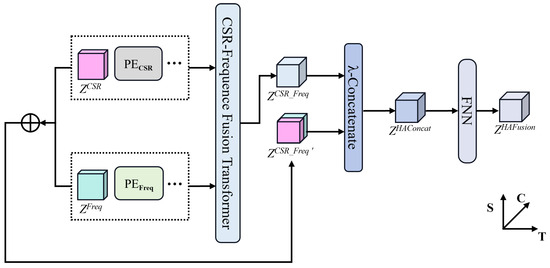 Subsequently, the CSR-Frequency Feature Fusion module fuses and to produce , where and are concatenated with different learnable positional embeddings , , respectively.
