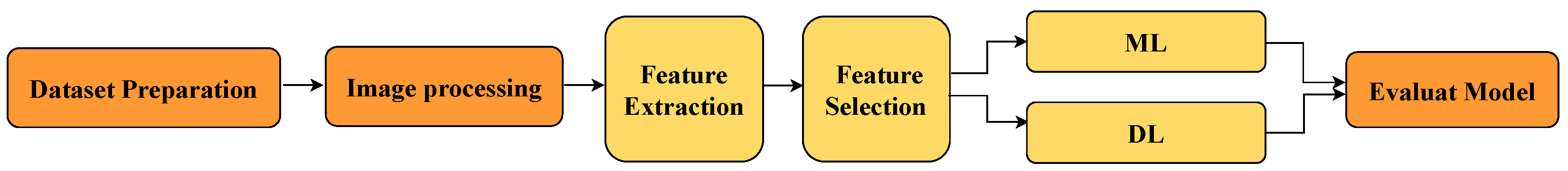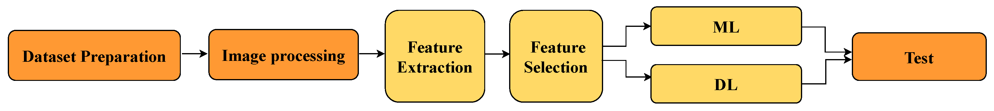 - Path 2: DL models are employed to extract abstract features from images, which are subsequently used for classification within DL architectures.