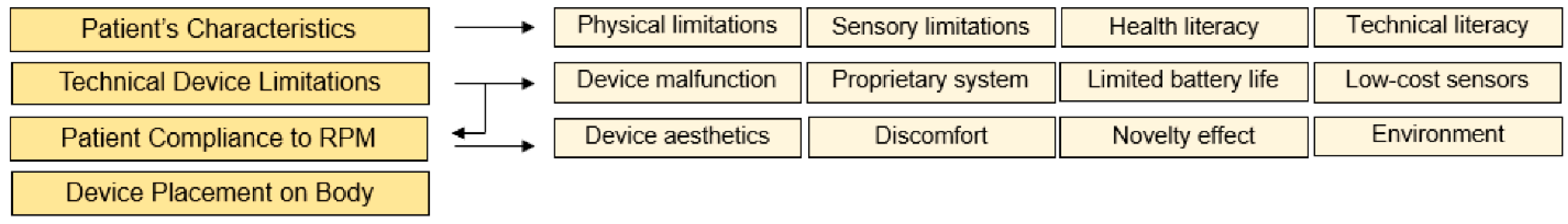 - Baumann, S.; Stone, R.; Abdelall, E. Introducing a Remote Patient Monitoring Usability Impact Model to Overcome Challenges. Sensors 2024, 24, 3977. [Google Scholar] [CrossRef]