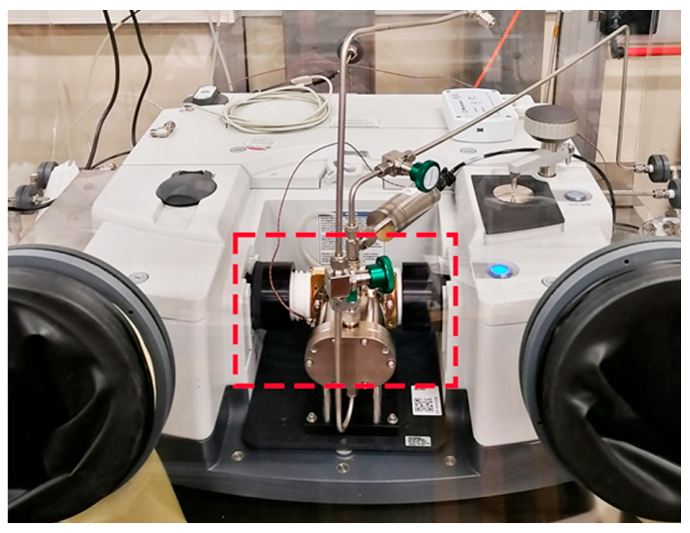 - Loianno, V.; Mensitieri, G.; Baldanza, A.; Scherillo, G.; Musto, P. Combining FTIR spectroscopy and pressure-decay techniques to analyze sorption isotherms and sorption kinetics of pure gases and their mixtures in polymers: The case of CO2 and CH4 sorption in polydimethylsiloxane. J. Membr. Sci. 2022, 652, 120445. [Google Scholar] [CrossRef]
