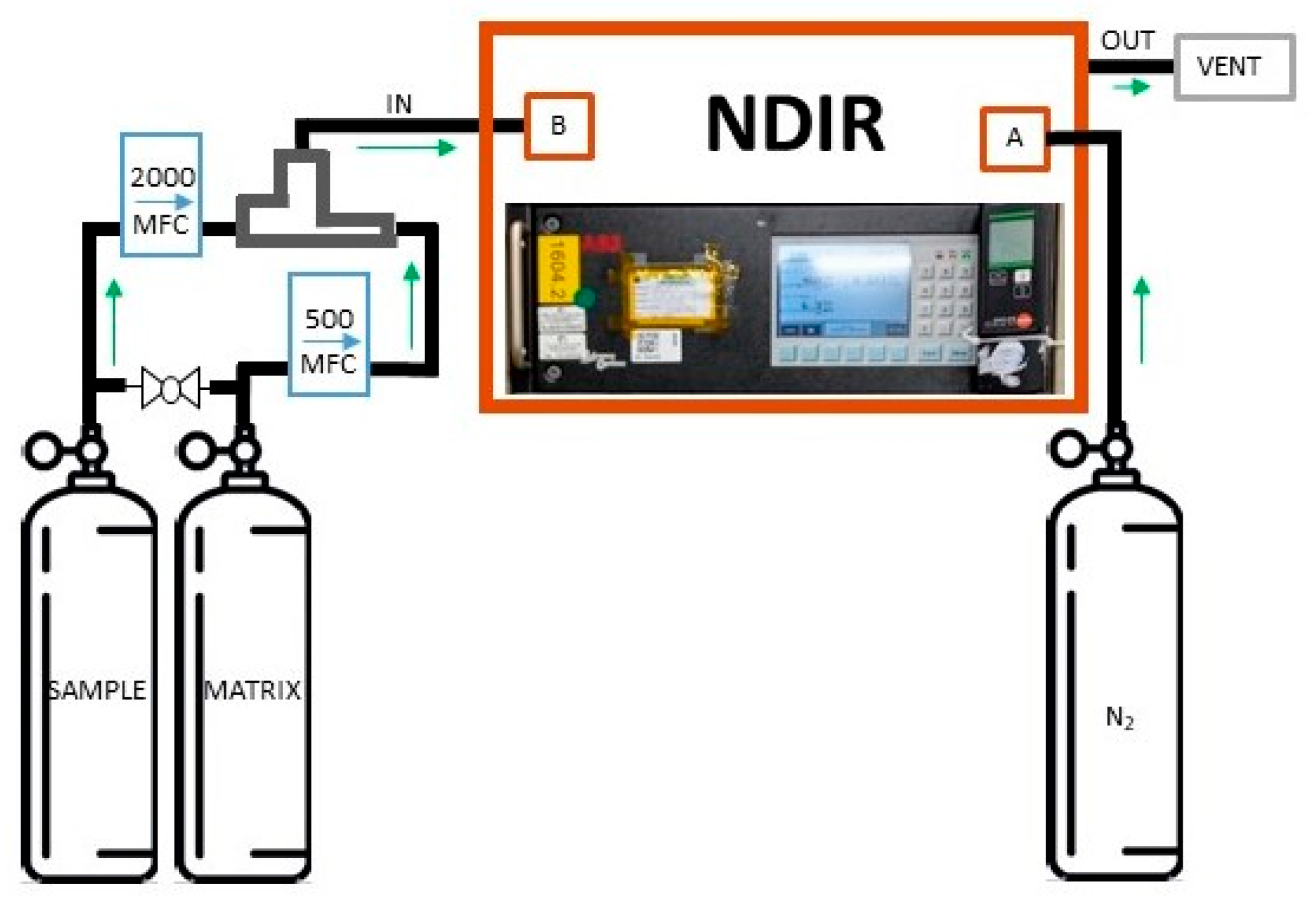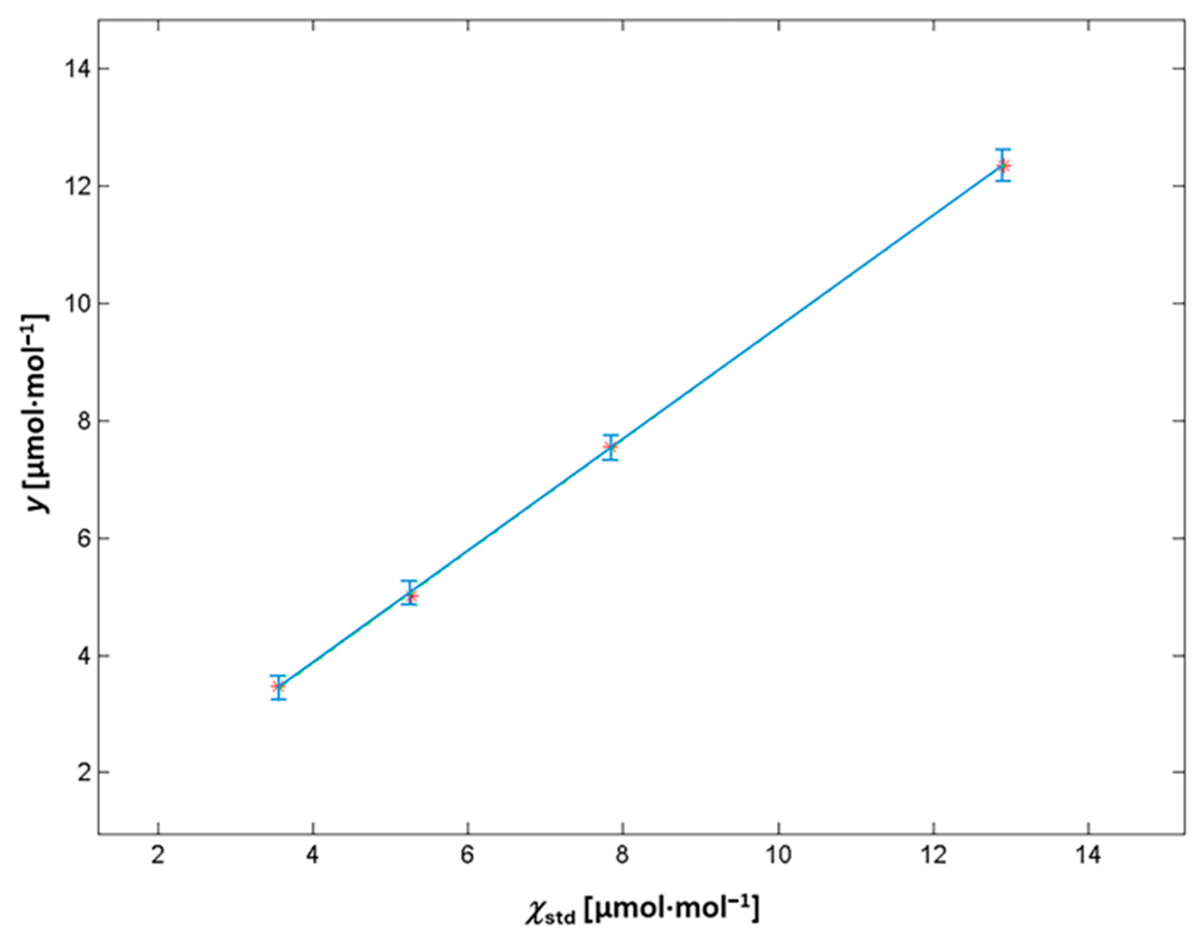 - ISO 6142-1; Gas analysis—Preparation of Calibration Gas Mixtures. Part 1: Gravimetric Method for Class I mixtures, 1st Edition. ISO: Geneva, Switzerland, 2015.