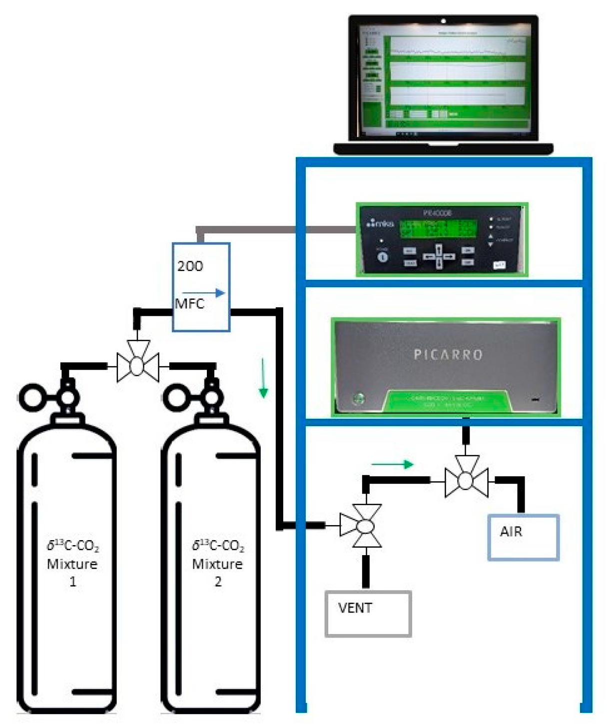 - Durbiano, F.; Pennecchi, F.R.; Rolle, F.; Pavarelli, S.; Sega, M. Stability study and uncertainty evaluation of CO2 certified reference materials for greenhouse gases monitoring. Measurement 2024, 232, 114653. [Google Scholar] [CrossRef]