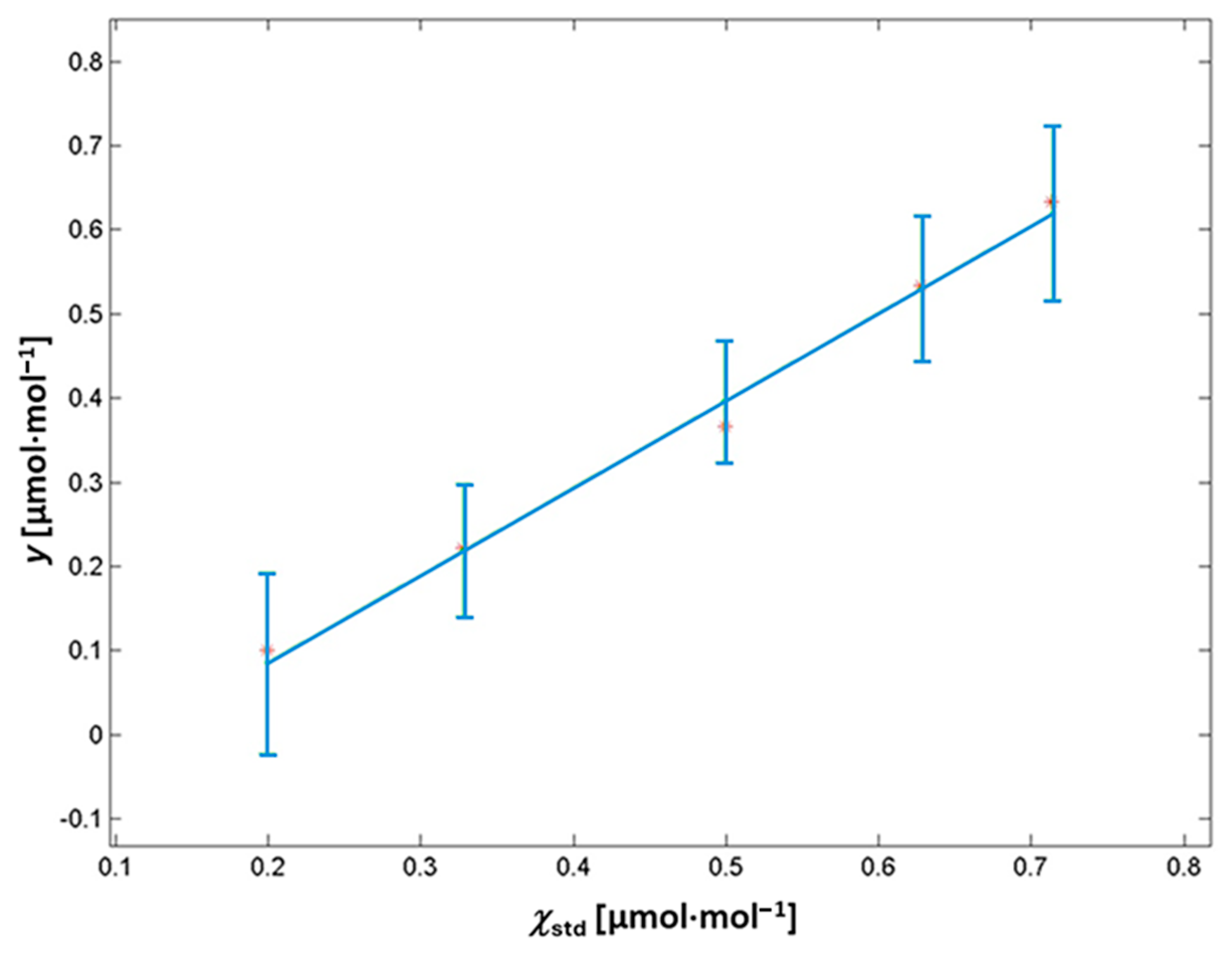 | Intercept of the calibration curve, a | 0.06 μmol·mol−1 | 0.15 μmol·mol−1 |