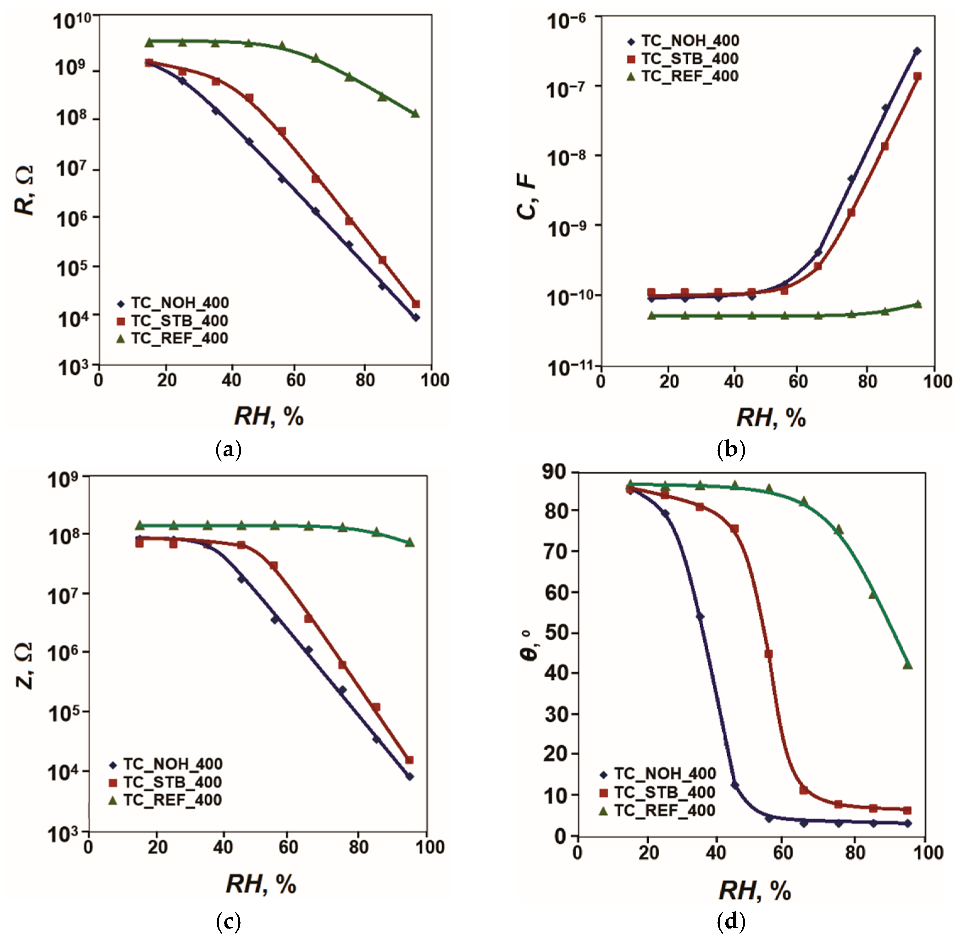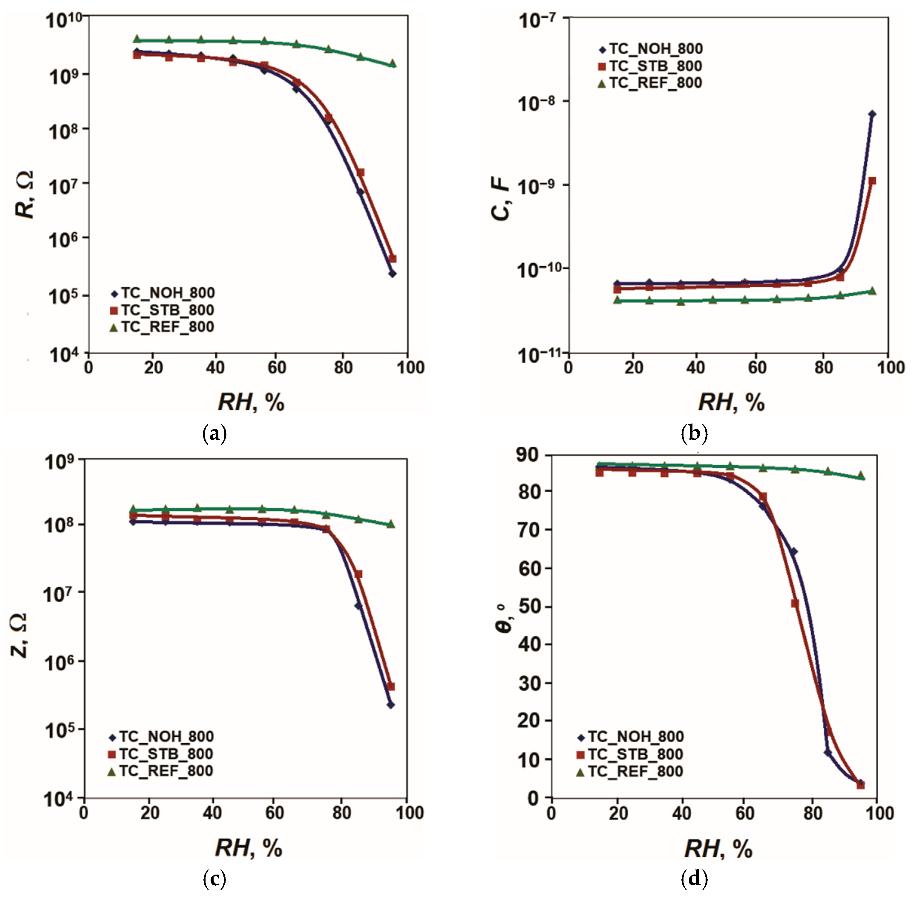 - Wang, J.; Su, M.Y.; Qi, J.-Q.; Chang, L.-Q. Sensitivity and complex impedance of nanometer zirconia thick humidity sensors. Sens. Actuators B Chem. 2009, 139, 418–424. [Google Scholar] [CrossRef]