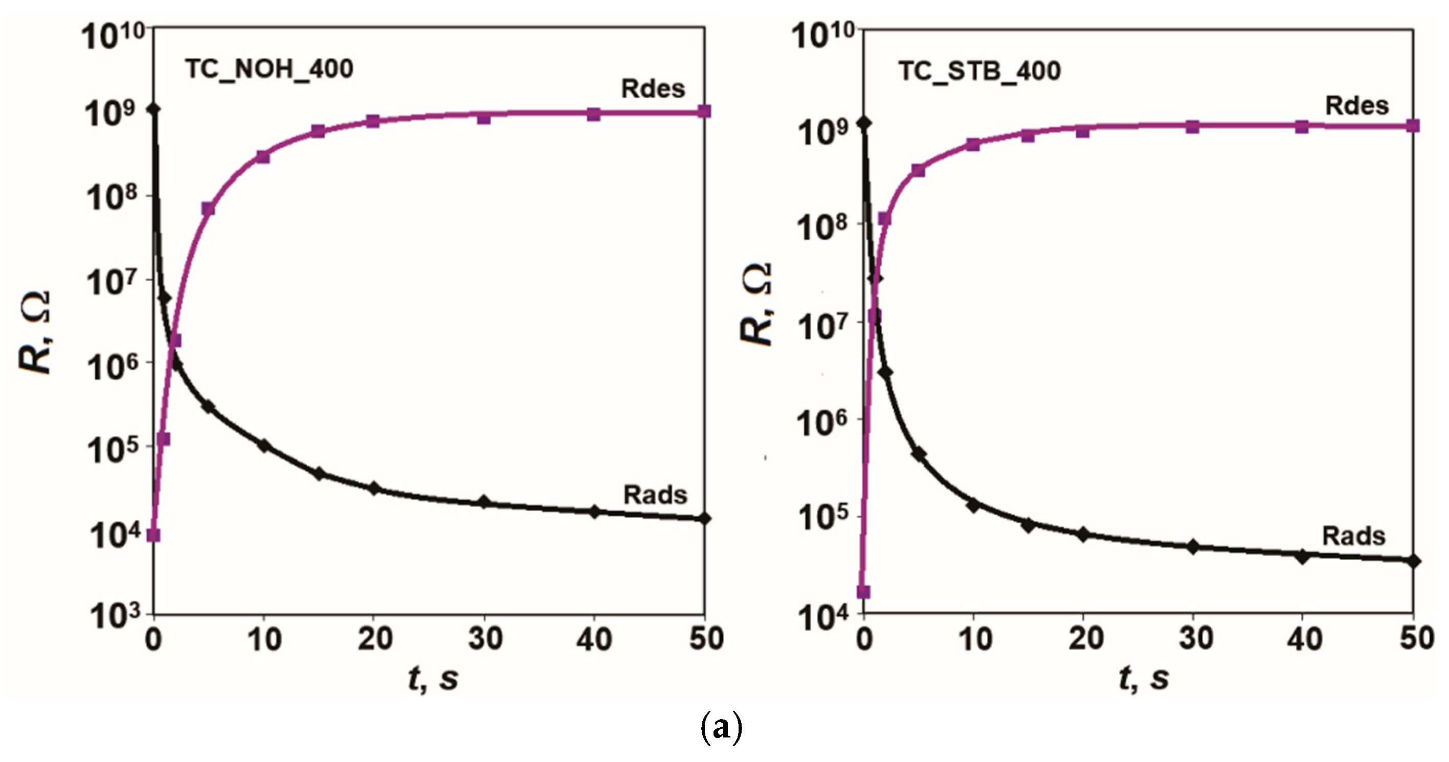 - For samples, sintered at 400 °C: TC_REF_400—anatase 12.3 nm; TC_NOH_400—anatase 9.5 nm; TC_STB_400—anatase 9.9 nm;