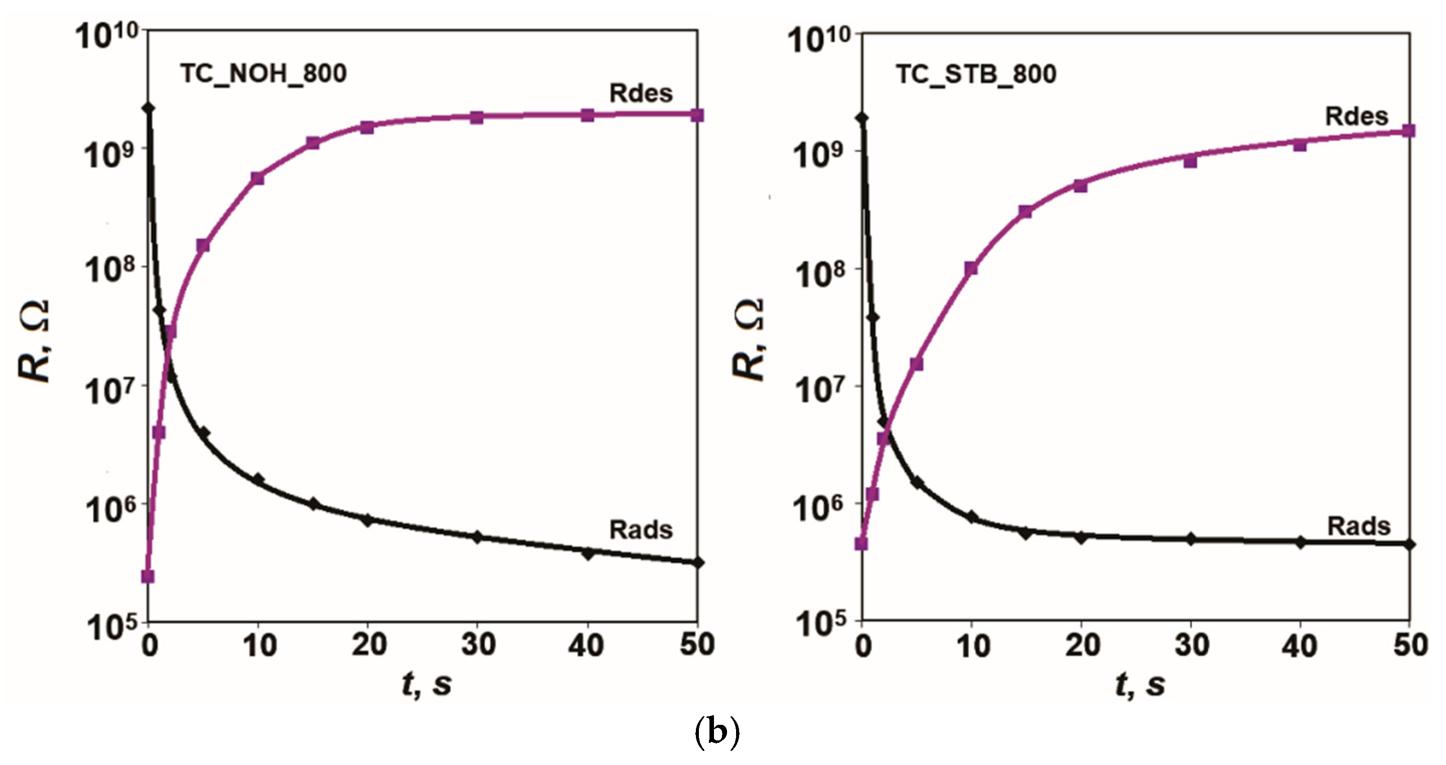 Sample | Rmax, Ω | Rmin, Ω | SRrel max, - | Sensing Response LR, Orders of Magnitude |