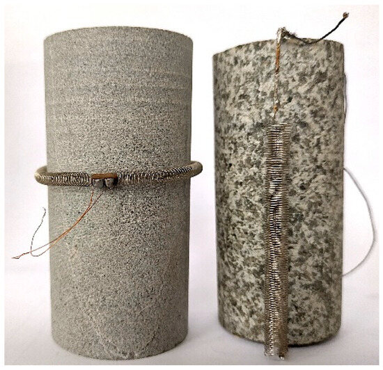 Historically, the first discussions on this topic appeared in the works of [13,14] suggesting the use of resistance strain gauges which are glued directly onto the surface of the tested sample. The strain of the sample results in resistance changes in the gauge. The use of resistance strain gauges under high-pressure conditions has been discussed, among others, by [15,16,17,18,19]. Some issues related to this application were analyzed also by [20,21,22,23]. The disadvantage of such a method is the small range of deformation measured (a few per cent at most). If the sensor is glued to a rock sample, there is a risk that the pressure will dent the resistive path in a cavern or fracture in the rock, making it impossible, or worse, falsifying the measurement.