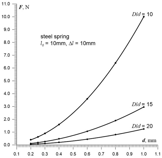 To maximize inductance in the sensor, the optimal D/d ratio should be within the range: 15 < D/d < 20. If D/d > 20, the turns may become unstable, leading to short circuits and friction between them, and if D/d < 15, the inductance of the sensor is unnecessarily reduced. A sensor within the optimal range 15 < D/d < 20 ensures stable turns positioning and maximized inductance while maintaining relatively low resistance—beneficial for the quality factor of the resonant circuit. Additionally, such a sensor, when considered as a tension spring, exerts minimal force on the mounting hooks that attach it to the test sample. Achieving the maximum D/d value of approximately 20 is possible only if the spring is wound with high precision.