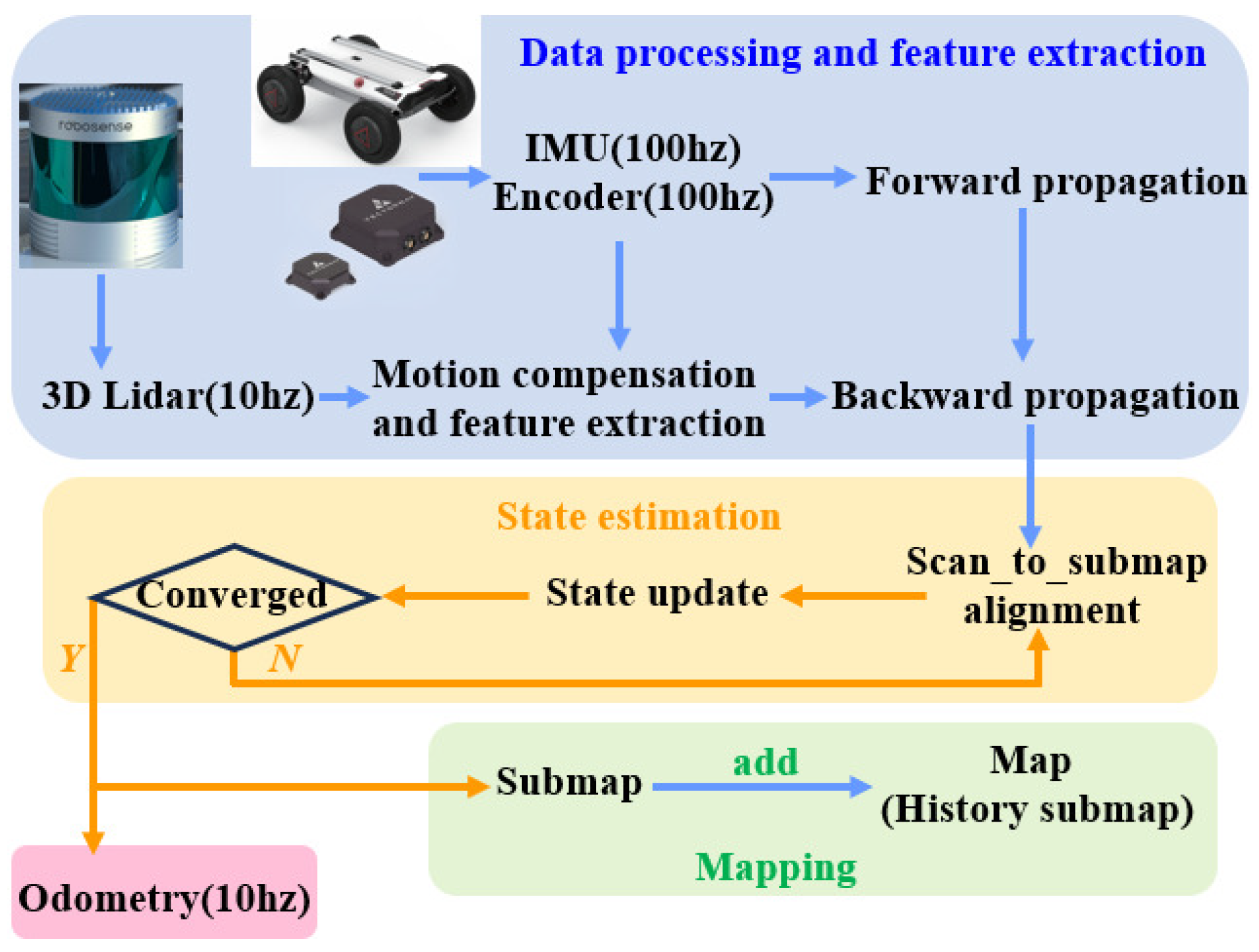 Mobile robots are equipped with a variety of sensors, which not only provide rich environmental information but also offer high-precision pose estimation. By using three-dimensional (3D) mapping based on the LIO architecture, the vehicle can better understand its driving environment [