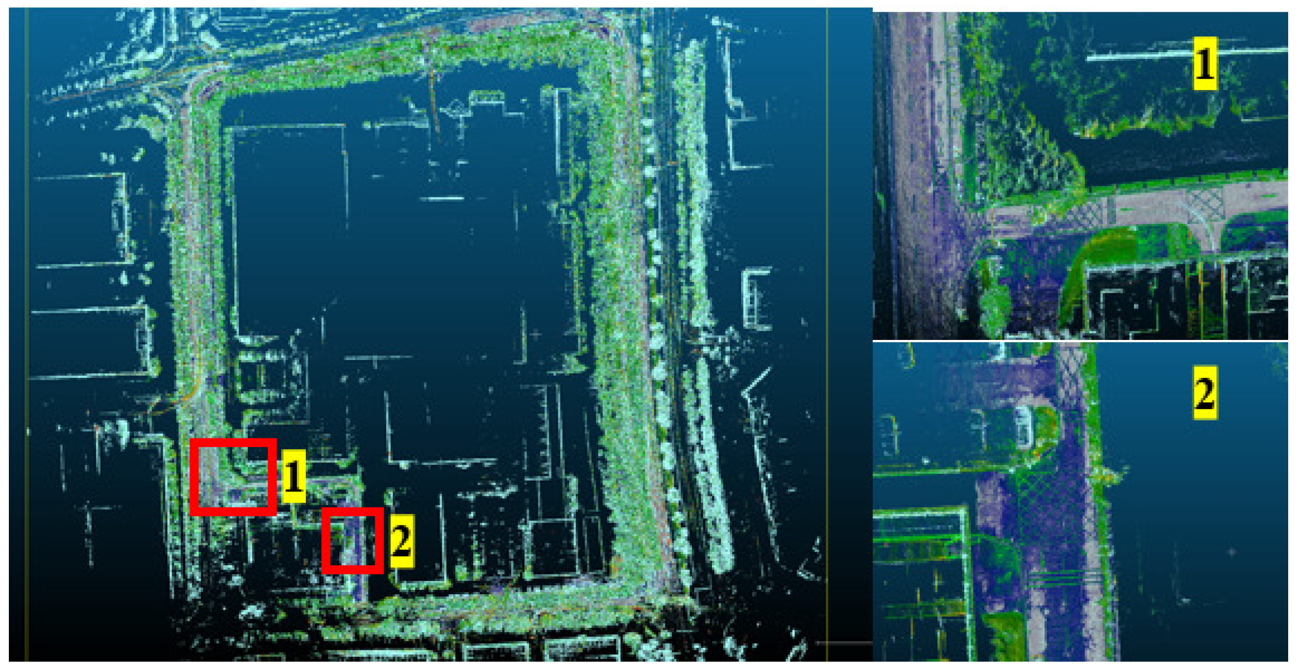 3]. It has high accuracy and computational efficiency, and can reduce pose estimation errors through the SLAM framework; however, it does not consider point cloud distortion during motion. Reference [