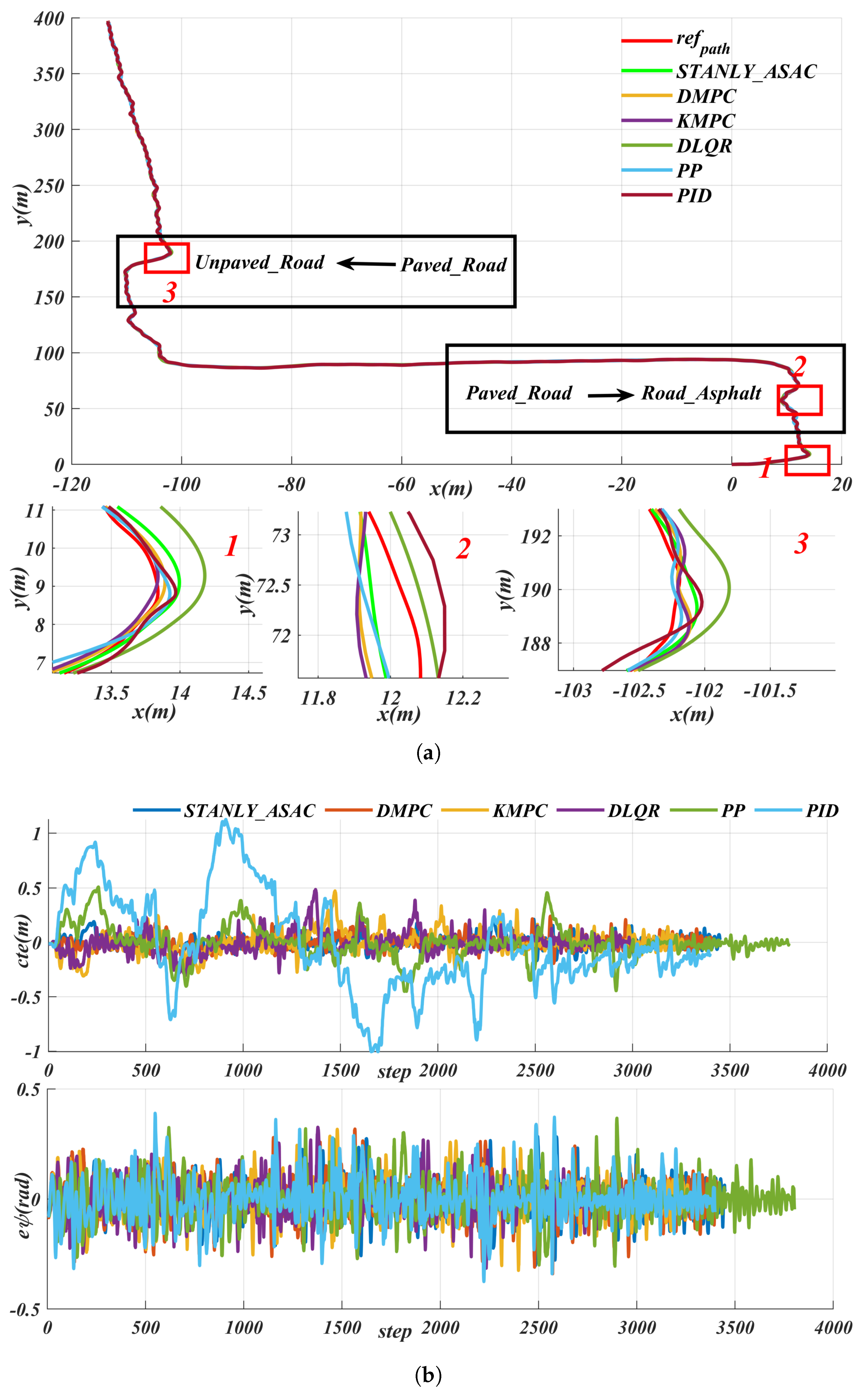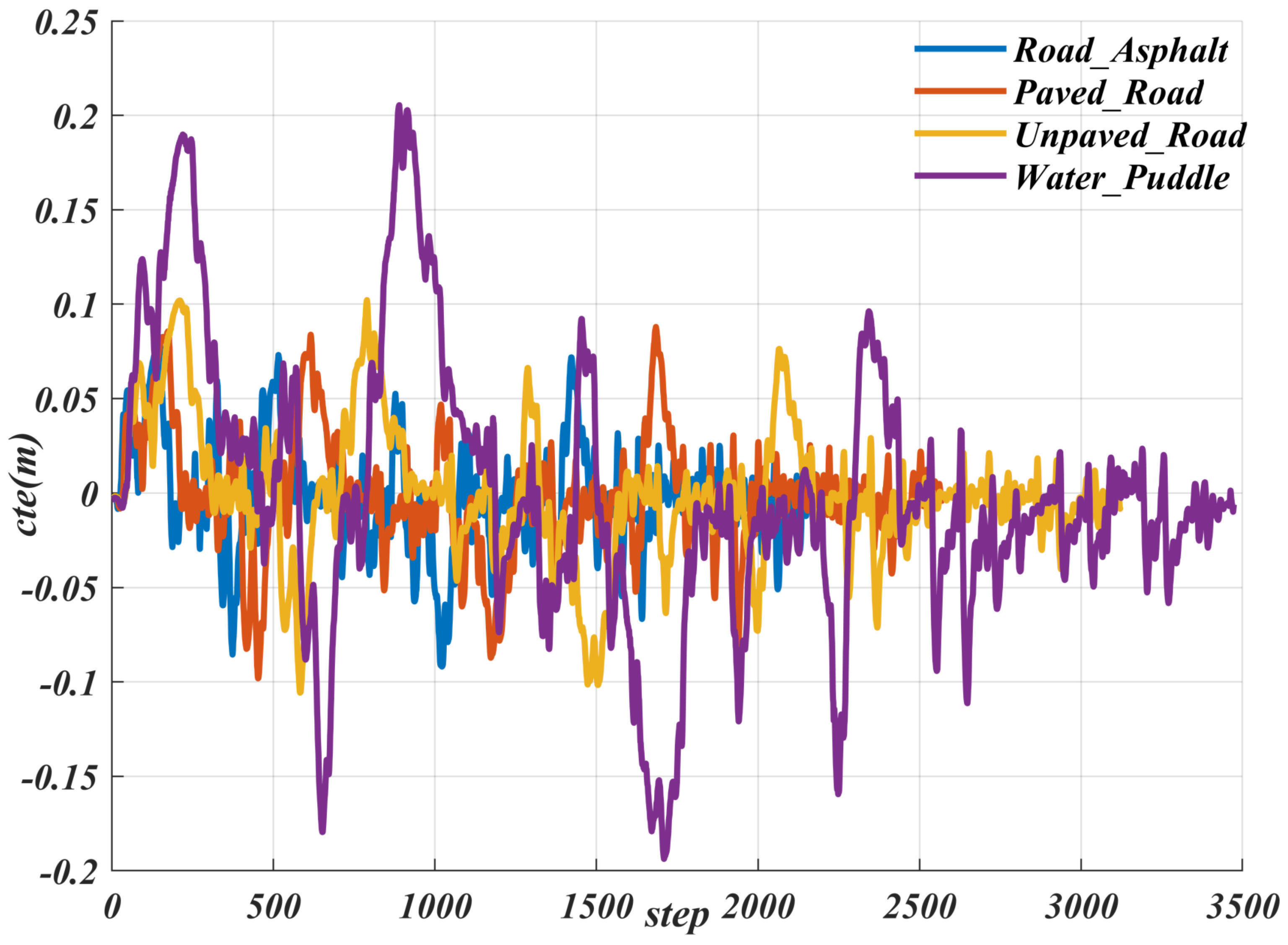 17], which greatly improved the convergence efficiency of the training framework. They also designed a reward function to ensure tracking accuracy during autonomous driving and to improve driving safety. However, this study did not consider the impact of road surface materials and did not conduct real vehicle tests. In [