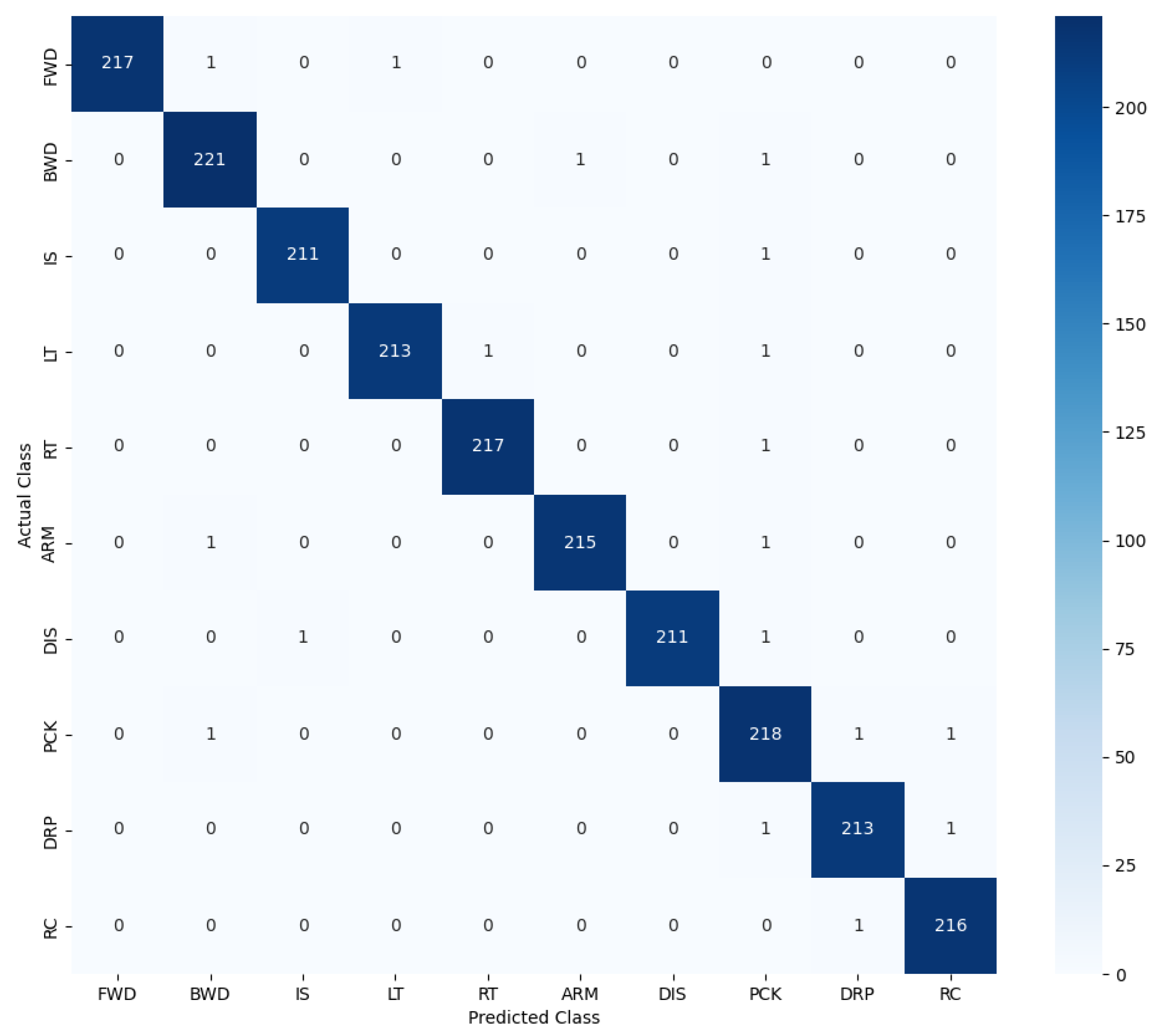 Figure 5) demonstrates the ability of our model to distinguish between eye-based, mouth-based, head-based, and combined gestures, with minimal inter-class confusion. Classes with visually subtle differences, such as
