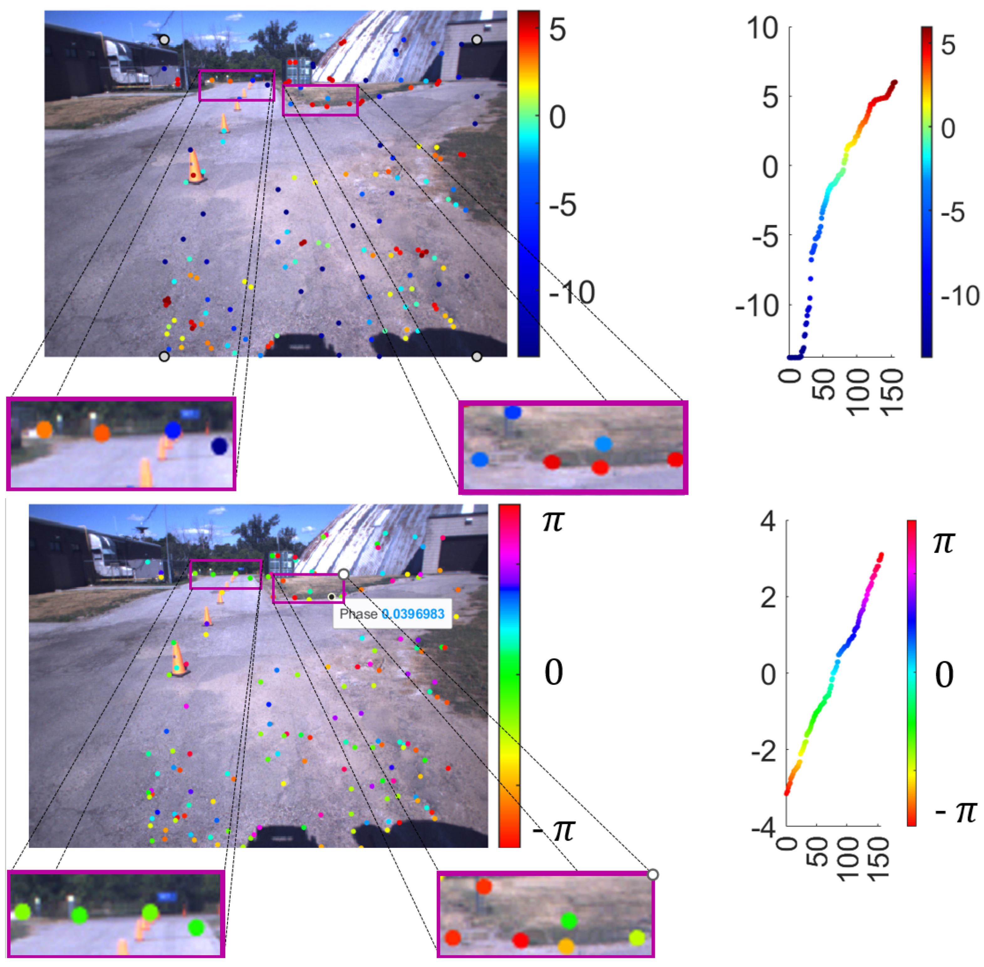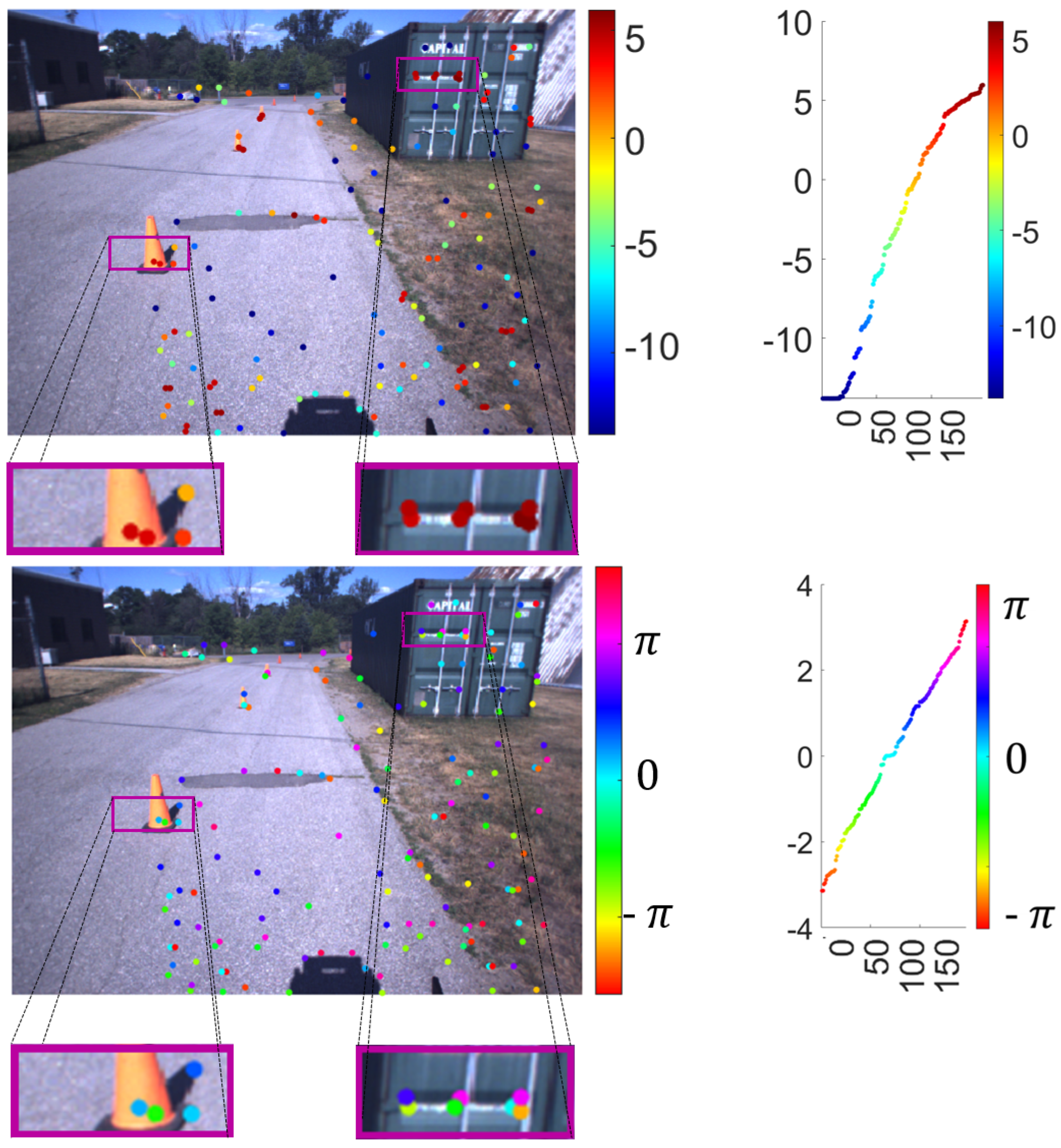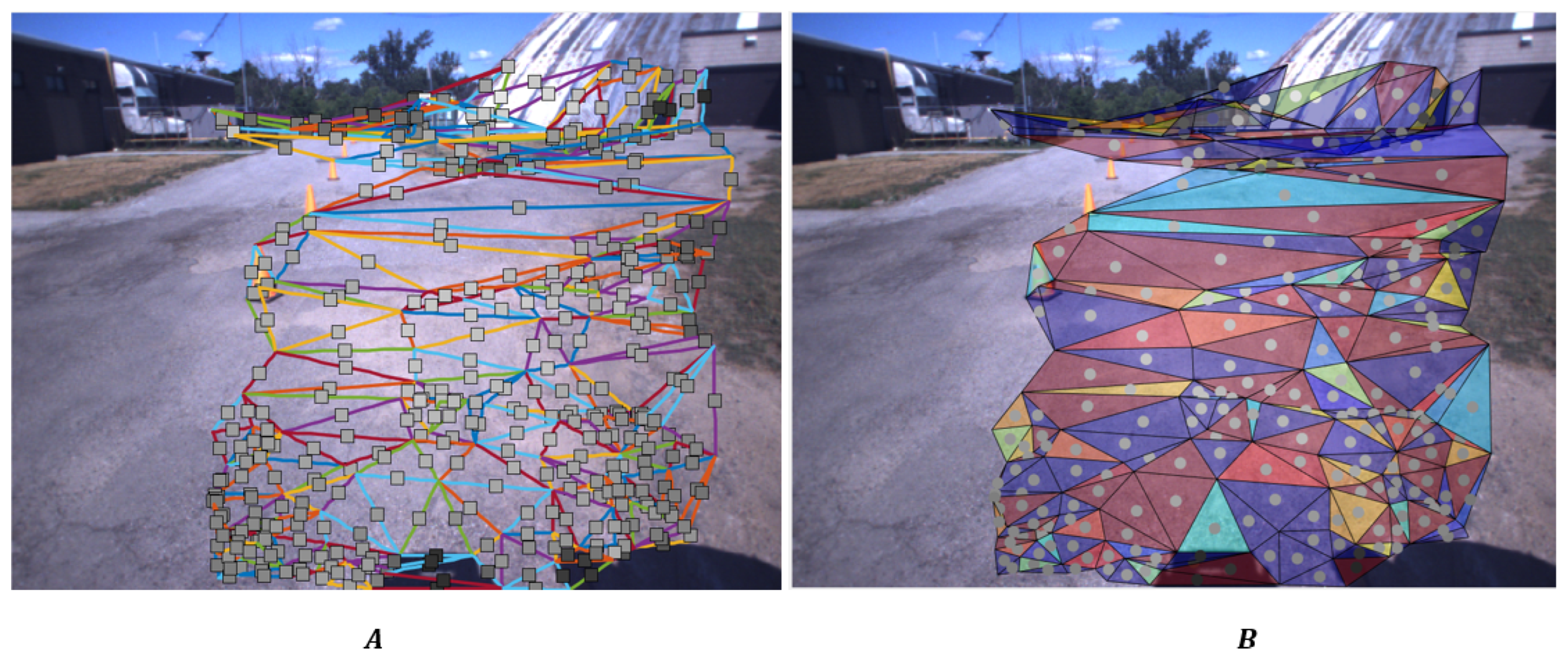 Figure 4 represents the detected keypoints from the stereo image pair, with a pseudo-color indicating the distance of the corresponding 3D points with respect to the camera.
