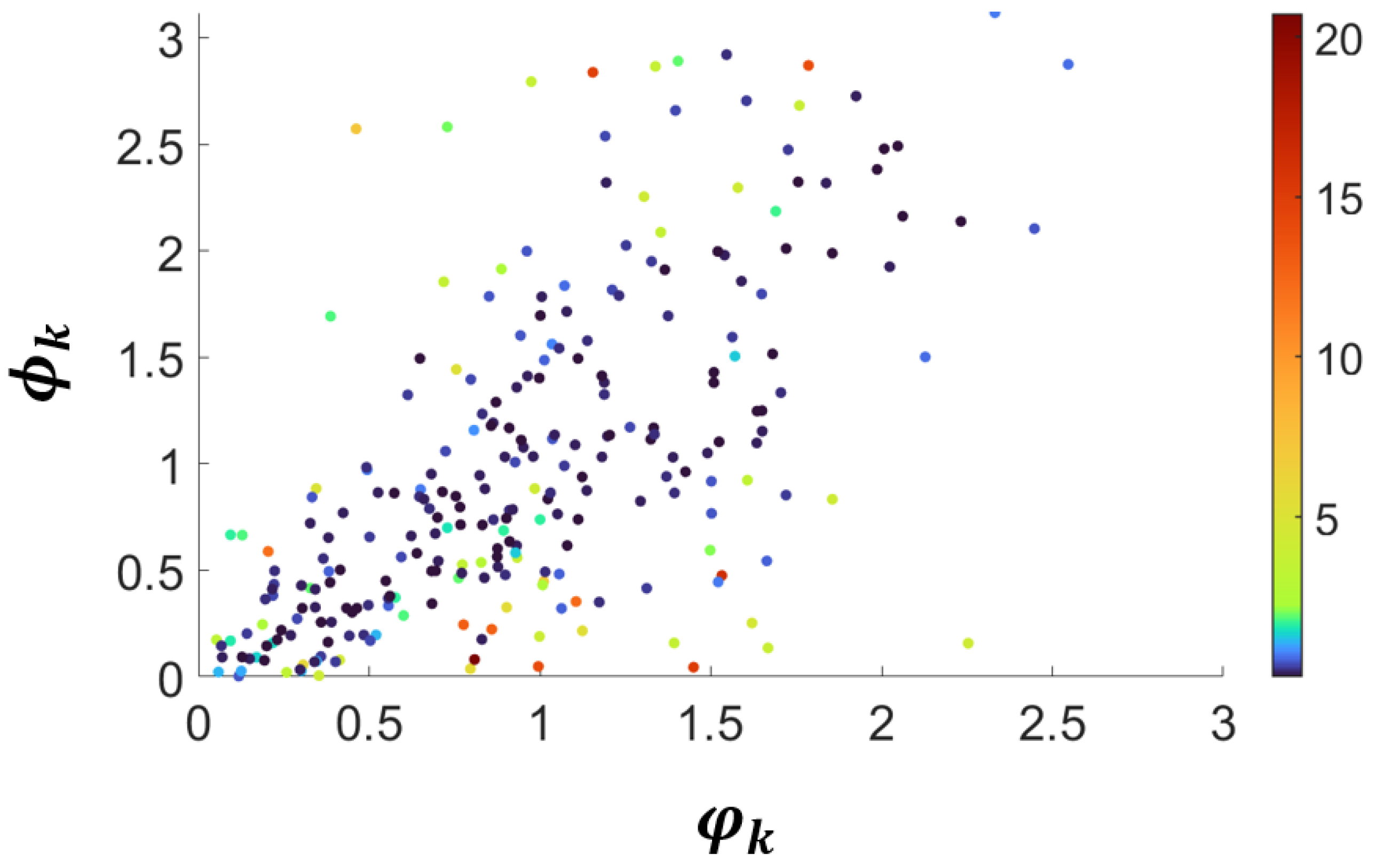 Figure 7 (blue circles), showing the scatter plot of the values of the heat diffusion kernel