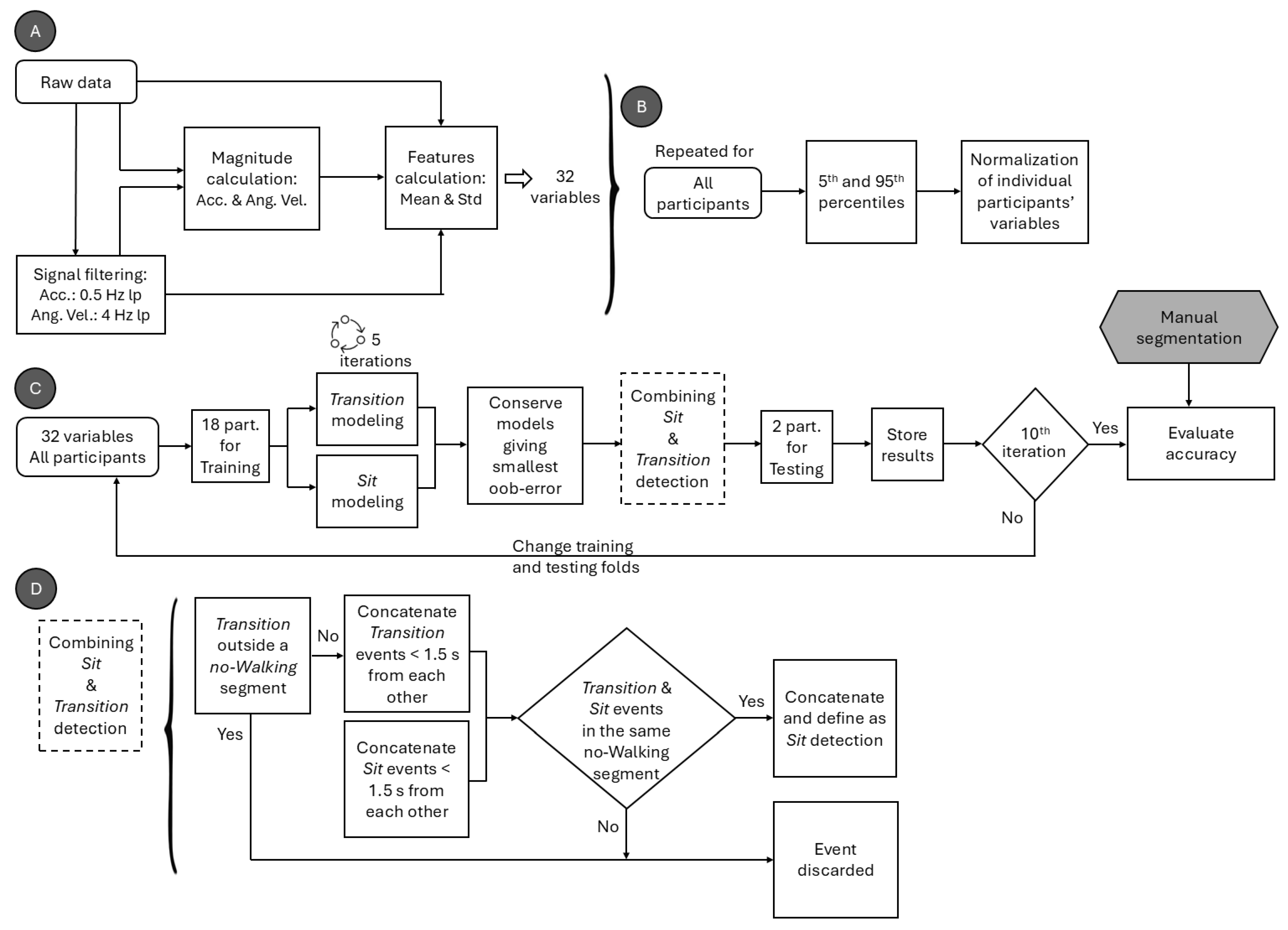 Goubault E, Martin C, Duval C, Daneault J-F, Boissy P, Lebel K. Enhanced Detection and Segmentation of Sit Phases in Patients with Parkinson’s Disease Using a Single SmartWatch and Random Forest Algorithms. Sensors. 2025; 25(19):6104. https://doi.org/10.3390/s25196104