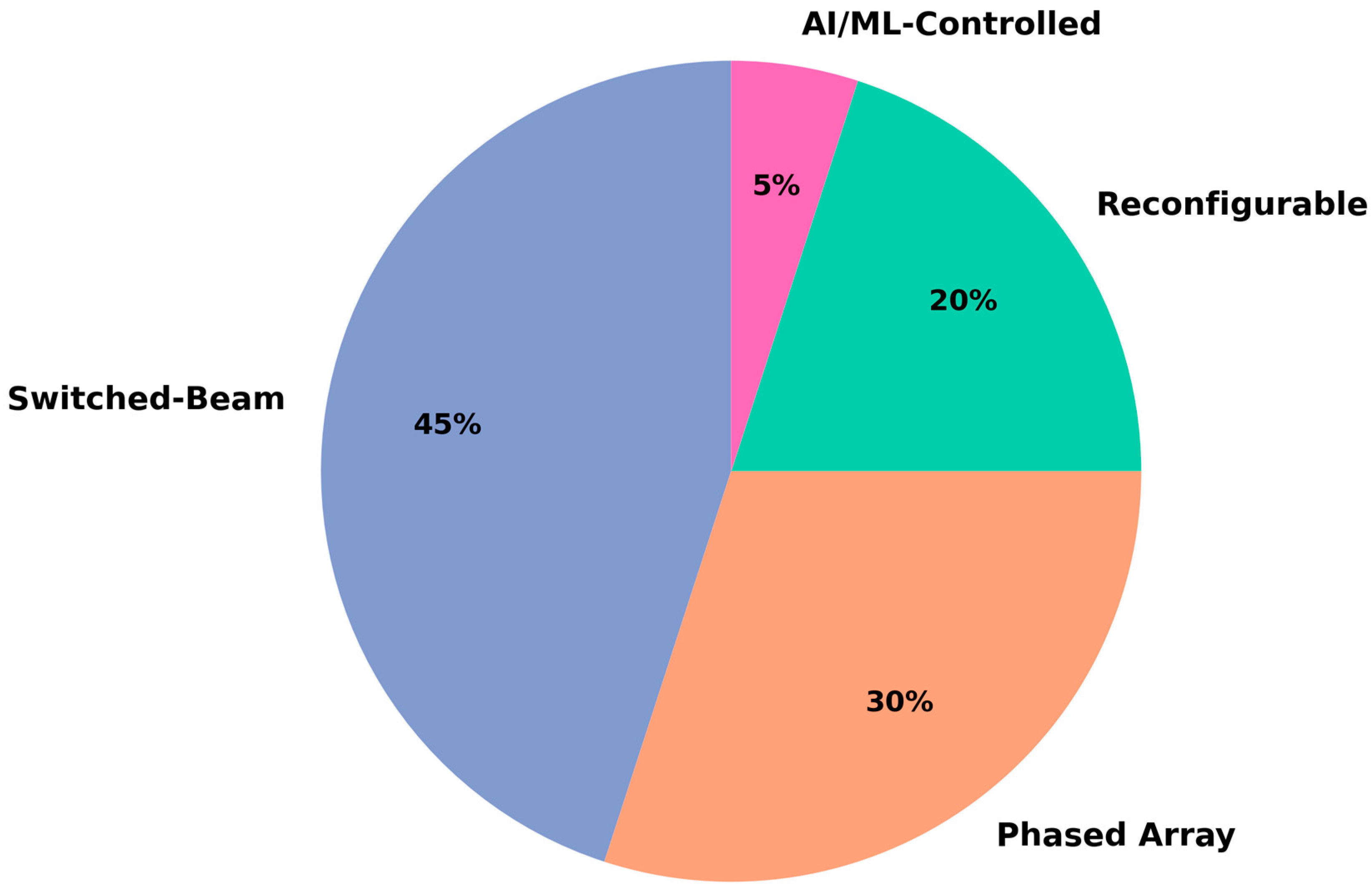 [104,157,160,161] | Antenna technologies | Phased Array, switched-Beam, multi-Beam antennas | Switched-beam, reconfigurable compact antennas |