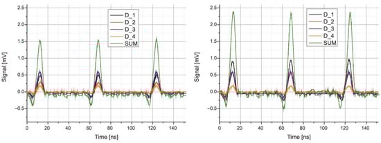Recorded signals from each segment of the QD-MWIR module and their combined sum.