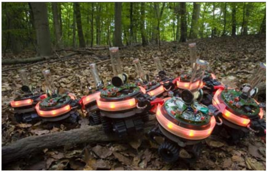 - Şahin, E.; Girgin, S.; Bayindir, L.; Turgut, A. Swarm robotics. In Swarm Intelligence: Introduction and Applications; Springer: Berlin, Germany, 2008; pp. 87–100. [Google Scholar]