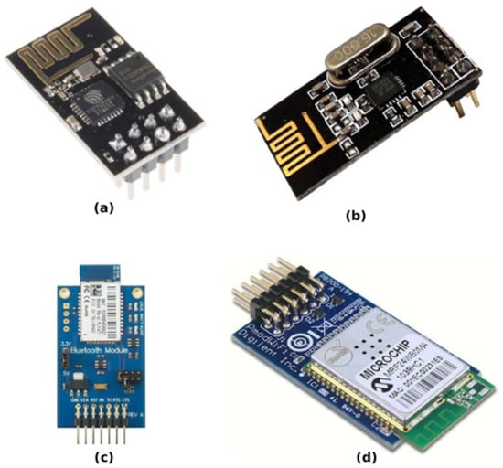 - 4GHz Wireless Transceiver nRF 24L01. Available online: https://store.fut-electronics.com/cdn/shop/products/nrf24l01_1024x1024.jpeg?v=1566906321 (accessed on 1 January 2024).[Green Version]