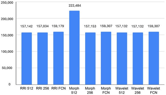 In terms of GPU memory, according to Figure 6, the Morph 512 model also stands out, consuming an average of 222,484 KB, which is notably higher than other models. The RRI-based and Wavelet-based models remain within a relatively stable range of 157,132 KB to 159,308 KB, indicating moderate memory consumption. FCN-based models, while slightly increasing memory usage, contribute to reduced GPU processing demands, making them a viable choice for real-time inference. The findings suggest that, for resource-constrained edge environments, Wavelet FCN or RRI FCN may offer the best trade-off between computational efficiency and classification performance. In contrast, Morph 512, despite its potential accuracy benefits, could be too resource-intensive for real-time deployment.