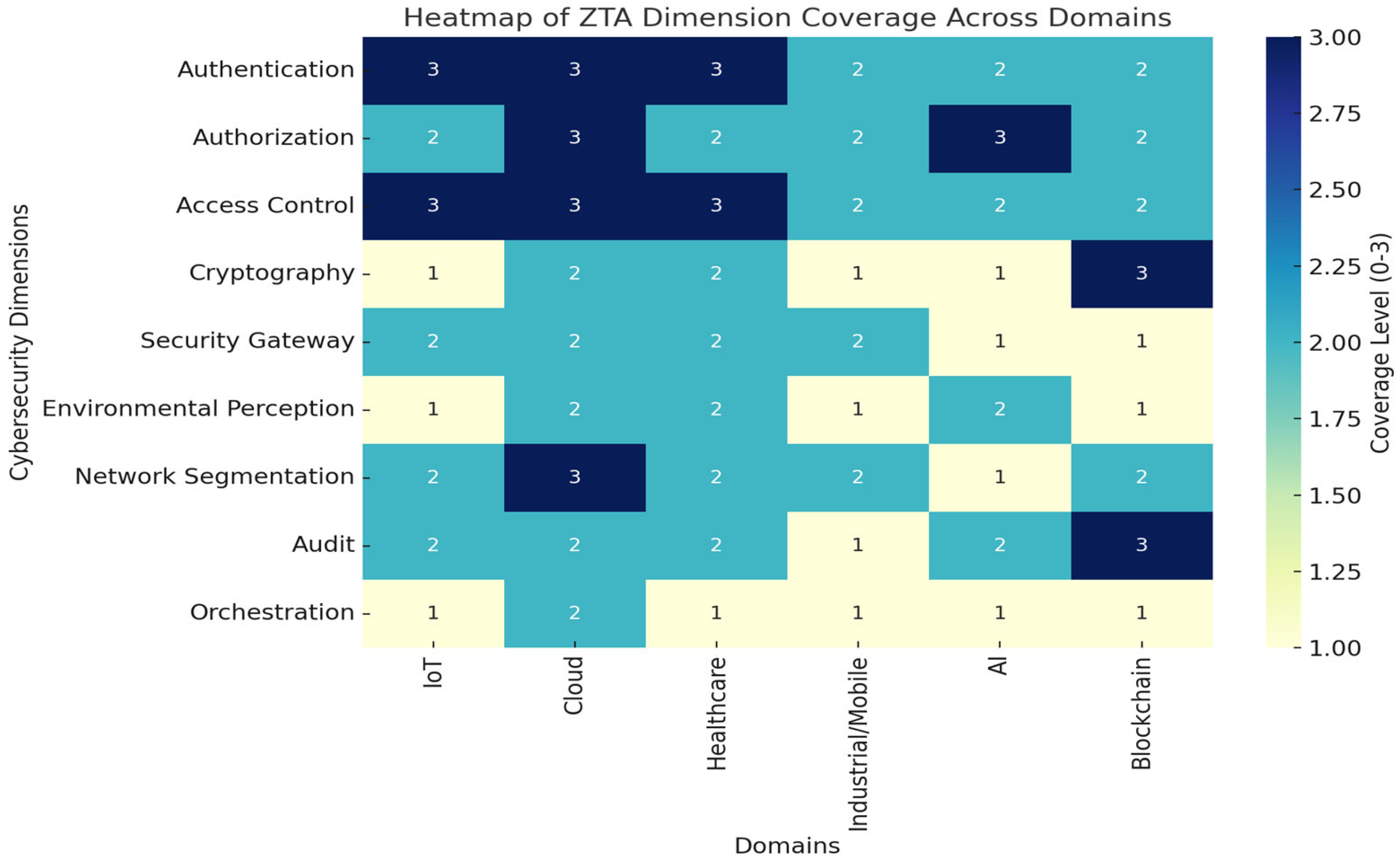 Cloud Computing | Microservices, containerization, remote access | ✓ Access control ✓ Identity verification ✓ Network segmentation | ✗ Limited orchestration ✗ Weak auditing ✗ Environmental perception often missing | D’Silva et al. [24], Liu et al. [71], Zhang et al. [23] |