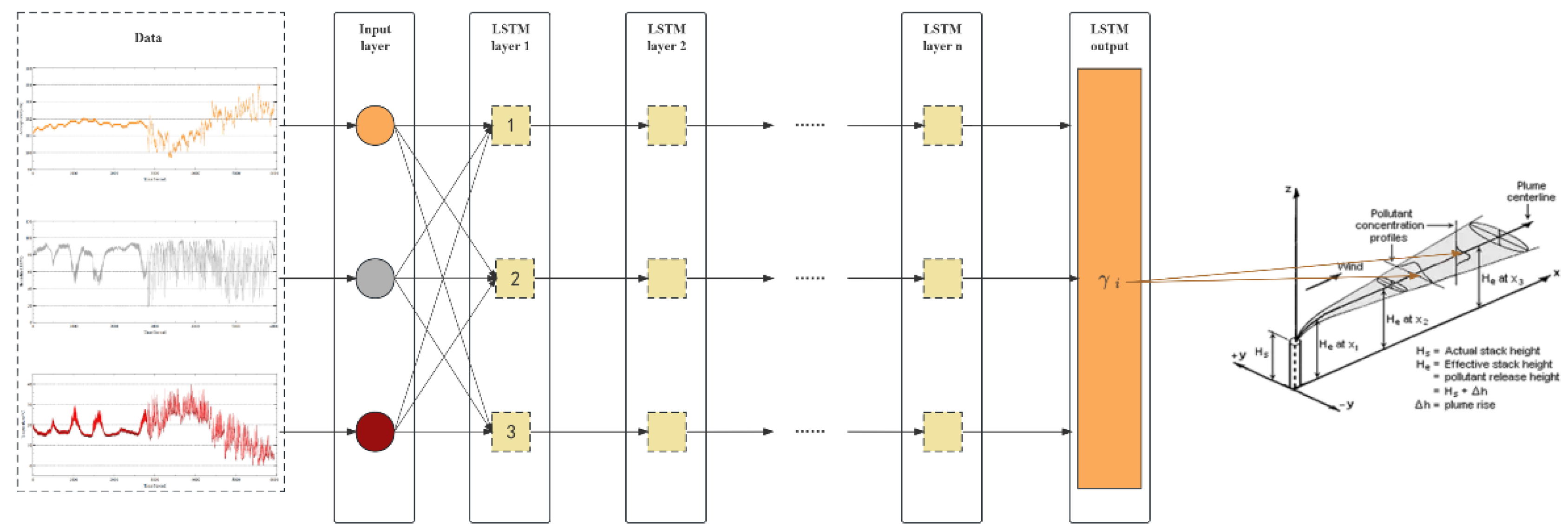 We train the dataset by deploying a Long Short-Term Memory (LSTM) model on a distributed static EIPA node. In the previous section, we introduced our optimization object γi. After conducting a preliminary analysis, we found that γi is influenced by the wind field. However, its precise value is also affected by factors such as temperature, humidity, atmospheric pressure, and the value from the previous moment. Since the recurrent neural network (RNN) model overwrites its memory in an uncontrolled manner at each time step, with both gradient explosion and gradient disappearance, the LSTM model, on the other hand, modifies its memory in a more precise way: by using a special mechanism to selectively remember and update information, it is able to keep track of the information for a longer duration. Therefore, we introduce the LSTM model to train on γi.