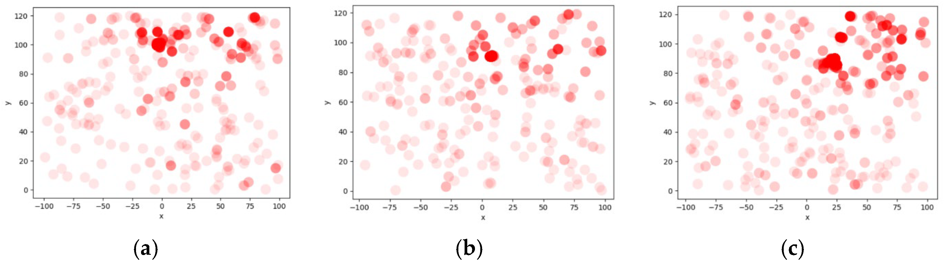 where Ci is the concentration of the pollutant detected by the ith static node, C is the concentration of the source, and ‘ρ-Ri’ is the distance from the source to the monitoring point of the ith static node.
