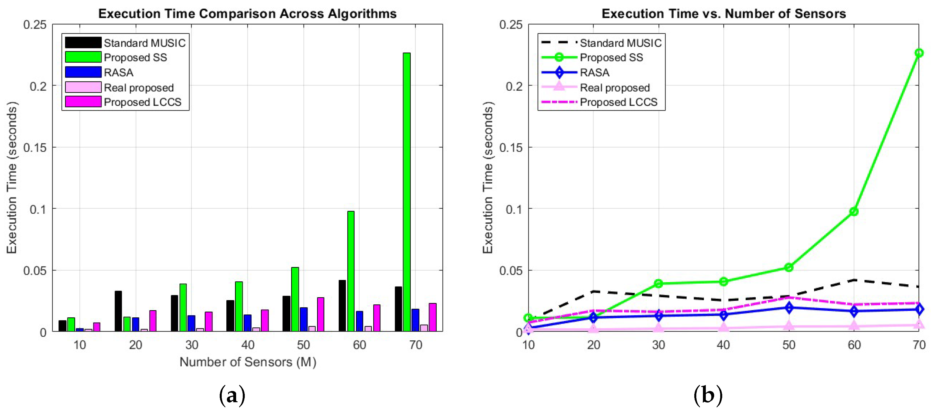 An initial summary of the performance of all tested algorithms, including RASA, Standard MUSIC, Proposed LCCS, NUSM, CSM, Real Proposed, and Proposed SS, is shown in