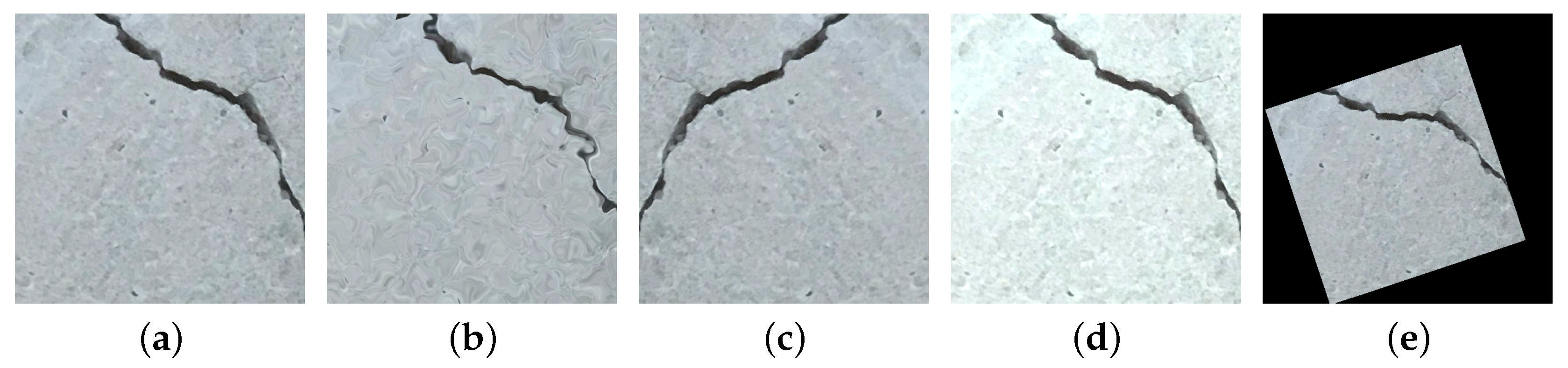 - Kulkarni, S.; Singh, S.; Balakrishnan, D.; Sharma, S.; Devunuri, S.; Korlapati, S.C.R. CrackSeg9k: A Collection and Benchmark for Crack Segmentation Datasets and Frameworks. In Proceedings of the ECCV 2022: European Conference on Computer Vision, Tel Aviv, Israel, 23–27 October 2022; Karlinsky, L., Michaeli, T., Nishino, K., Eds.; Springer: Cham, Switzerland, 2023; pp. 179–195. [Google Scholar]