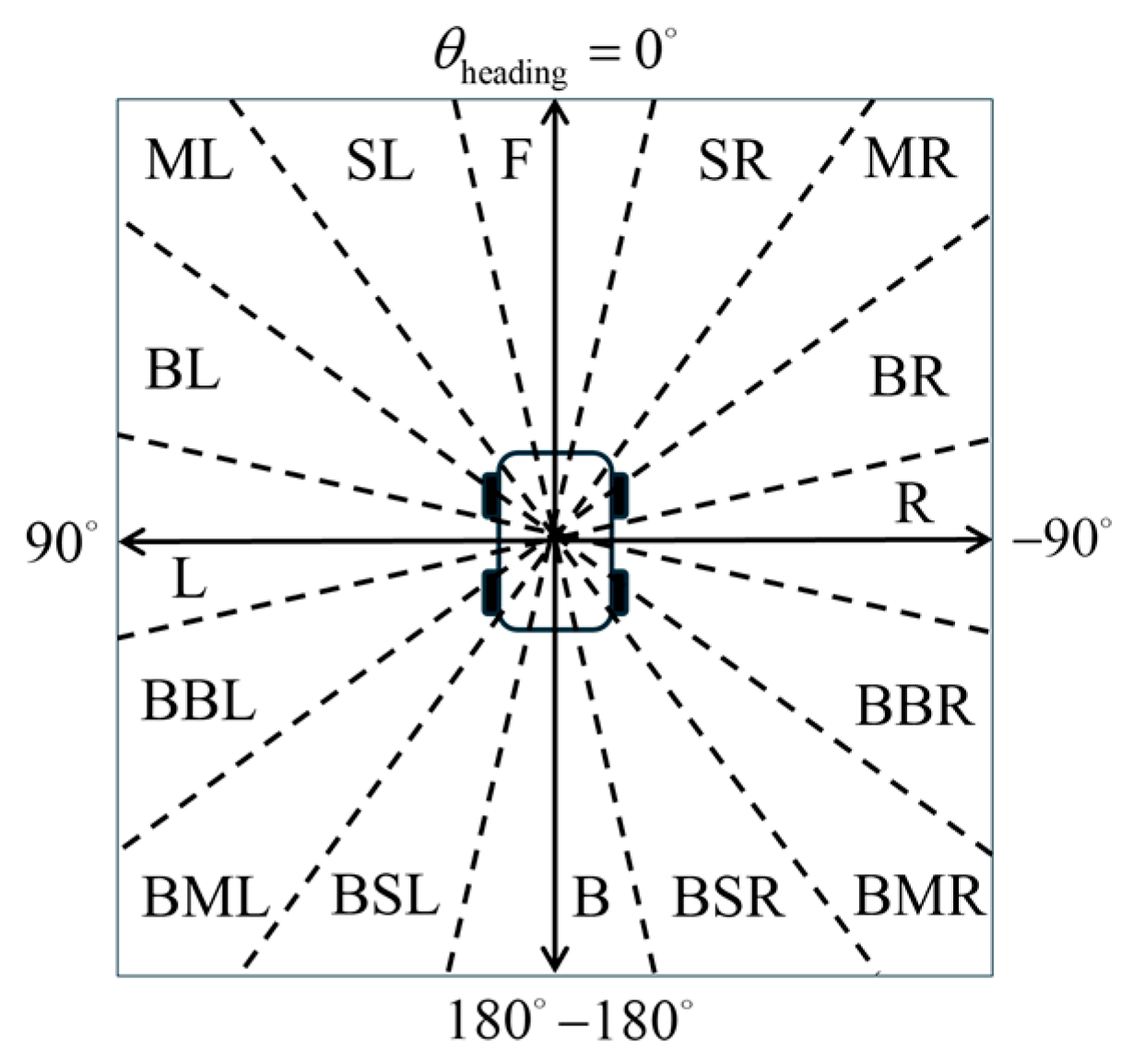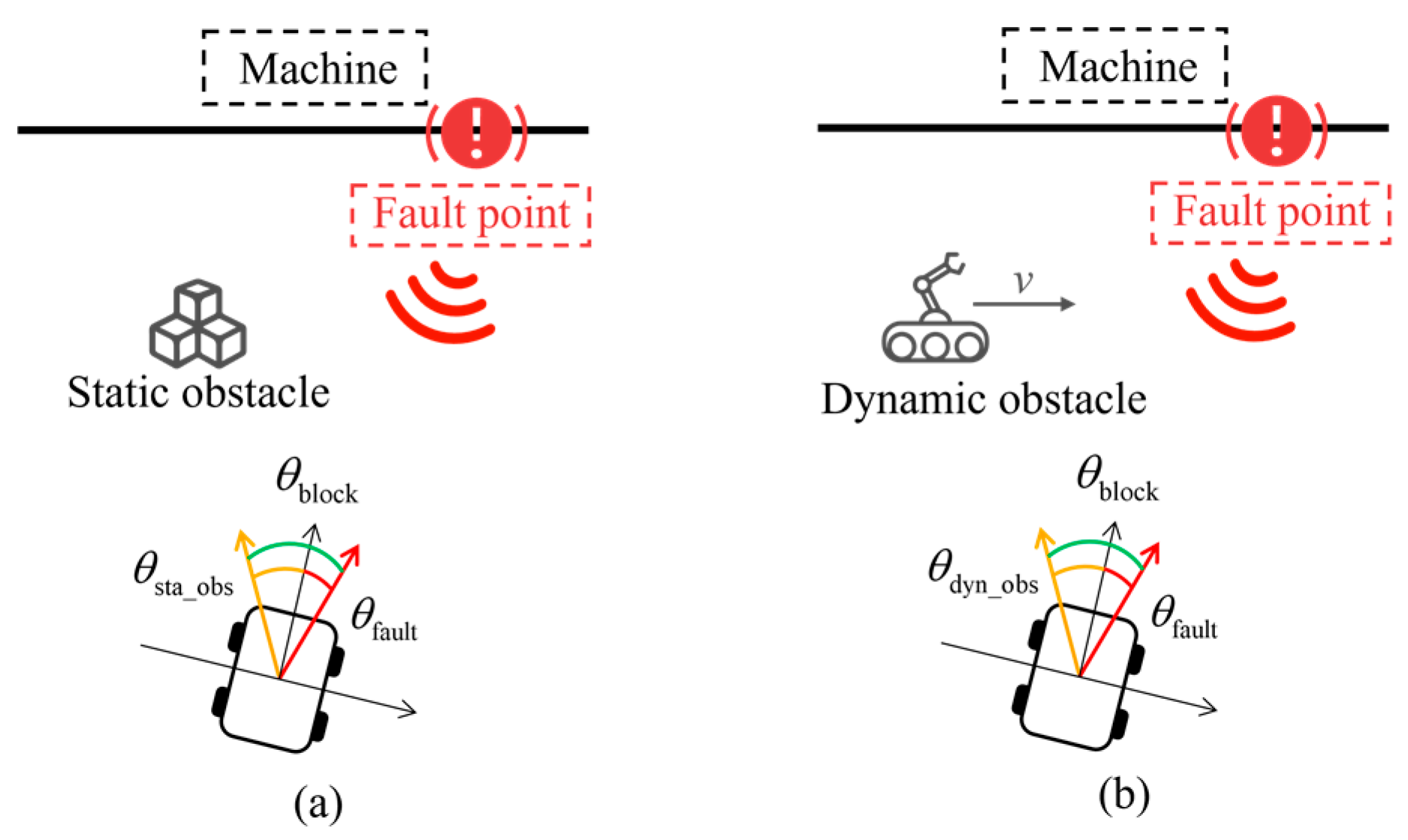 Composition of blocking angle. (a) Angular configurations in static scenarios. (b) Angular configurations in dynamic scenarios.