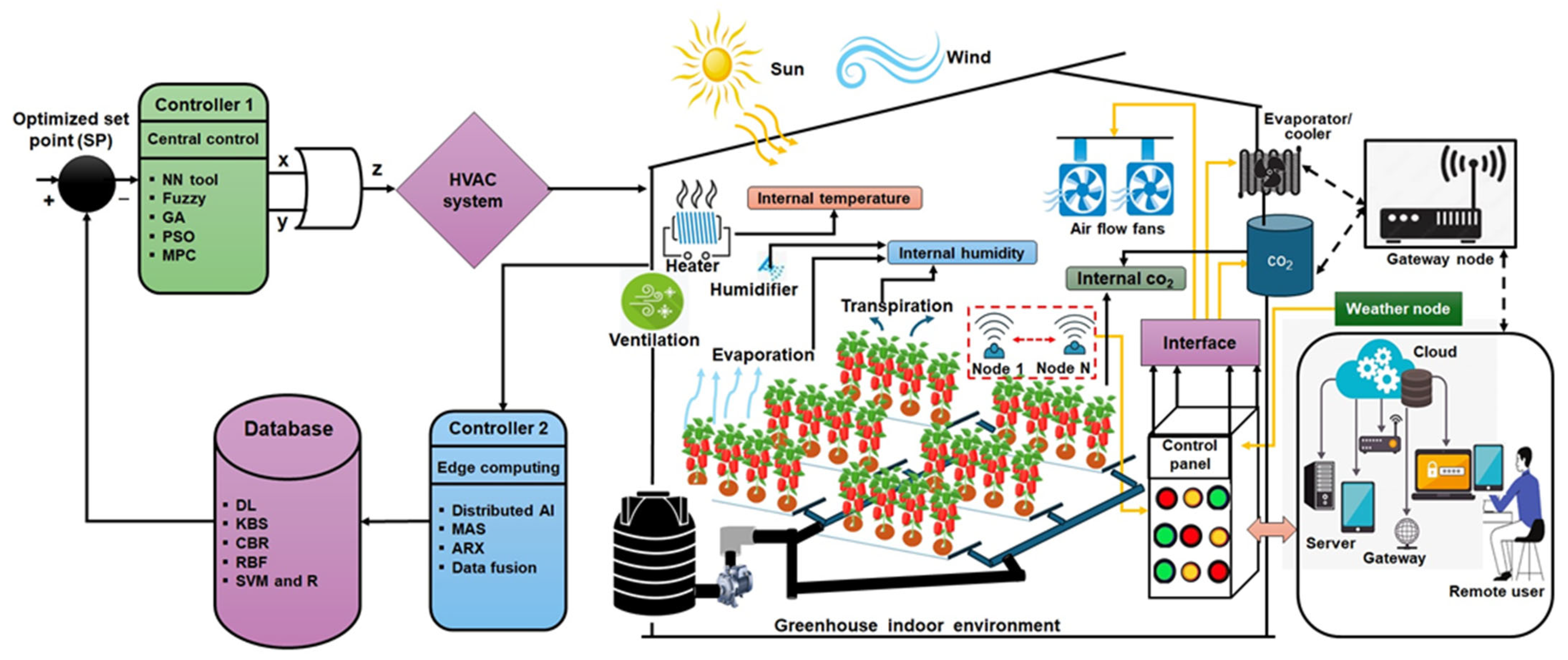 - Soheli, S.J.; Jahan, N.; Hossain, M.B.; Adhikary, A.; Khan, A.R.; Wahiduzzaman, M. Smart Greenhouse Monitoring System Using Internet of Things and Artificial Intelligence. Wireless Pers. Commun. 2022, 124, 3603–3634. [Google Scholar] [CrossRef]