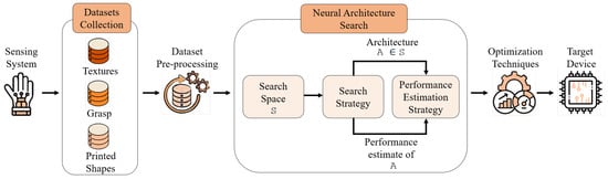 For the Textures dataset, the NAS baseline models achieved an average accuracy of 91.67%, with Weight Reshaping slightly improving this to 91.91%, Quantized NAS slightly lower at 90.96%, and the Combined method aligning with the baseline at 91.67%, reflecting stable performance across the candidate models. In the Grasp dataset, the NAS baseline averaged 94.44%, while Weight Reshaping reached 94.72%, Quantized NAS dropped to 90.47%. The Combined method closely matched Weight Reshaping at 94.56%, indicating consistent trends with minor variations. For the Printed Shapes dataset, the NAS baseline achieved 98.89% accuracy, with Weight Reshaping reaching 98.78%, Quantized NAS slightly lower at 97.72%, and the Combined method at 98.72%, showing that performance remained robust across all optimization strategies.